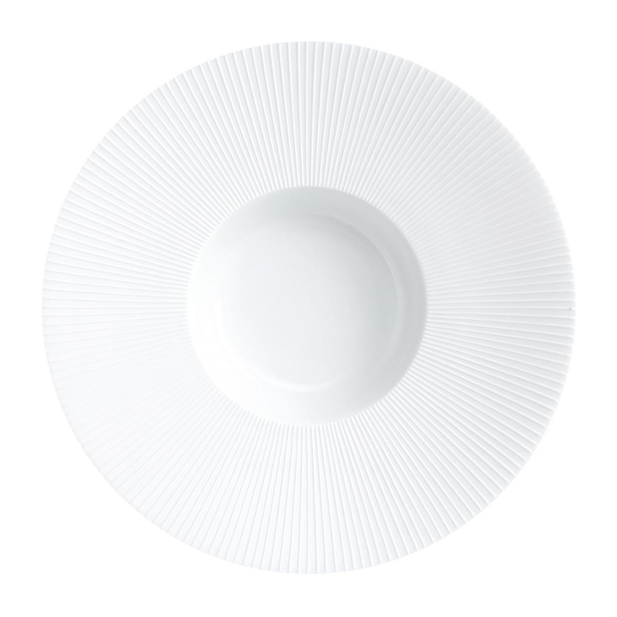 Raffiniertes Porzellan mit Strahlkraft – "Bolero Weiß" von J.L Coquet hat eine auffallende Präsens und Ausstrahlung trotz ihrer schlichten Formen. Feine strahlenförmige Gravuren sind kennzeichnend für das Tafelservice aus feinstem Limoges-Porzellan. Die besondere Oberflächenstruktur von "Bolero Weiß" ist auch ein haptisches Erlebnis. Die satinierten Tellerränder stehen in Kontrast zu den glasierten Tellerspiegeln. Dieser Kontrast verleiht dem eleganten Tafelservice eine organische Wärme.