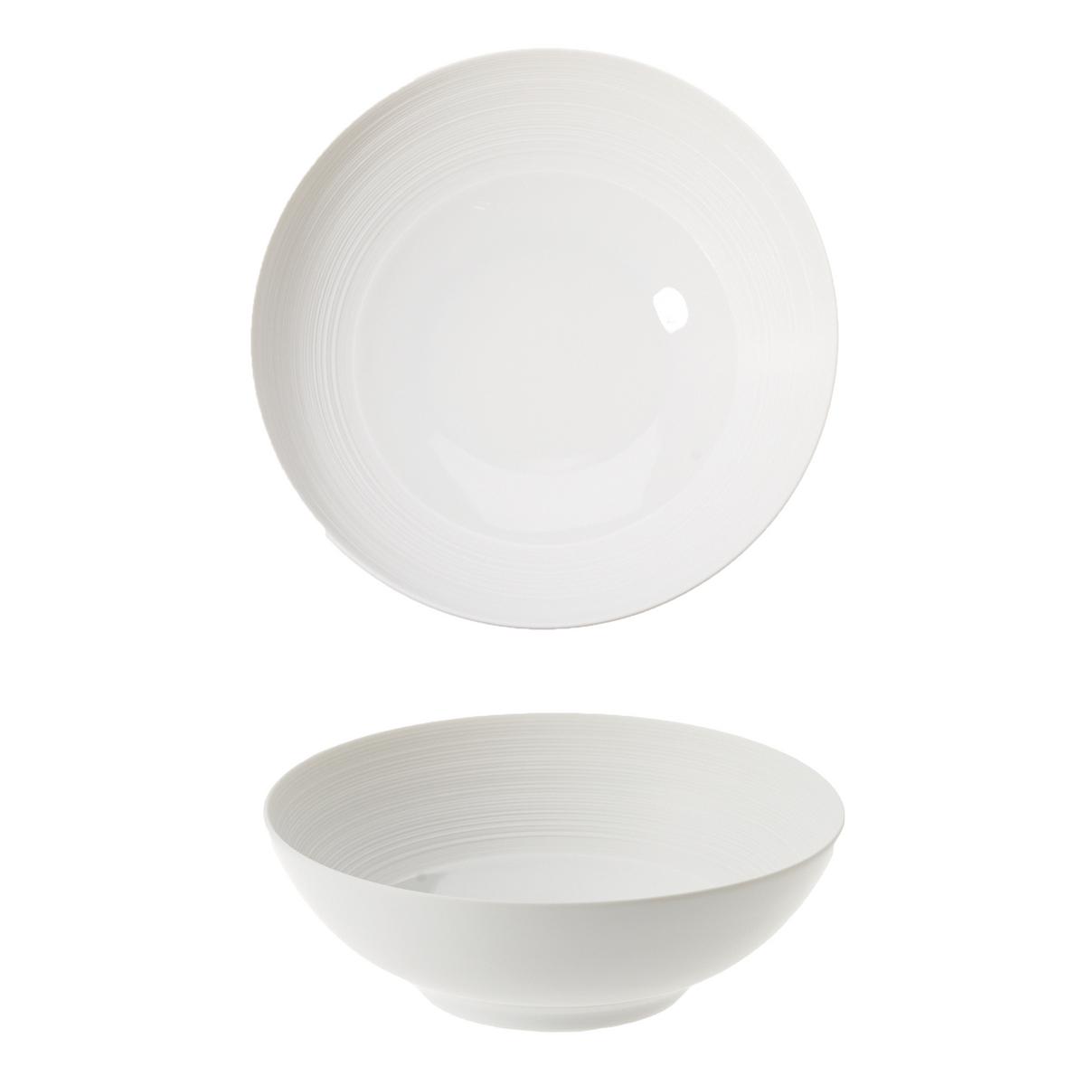 Zart, pur, belastbar: Das Tafelservice "Hémisphère Weiß" ist die puristische Limoges-Porzellan-Legende der exklusiven Porzellanmanufaktur J.L Coquet. Gourmets kennen das Service aus Sternerestaurants rund um die Welt. Wie die Ringe eines Planeten umkreisen feine Rillen auf matten Fahnen glänzend weiße Spiegel. Jedes Stück der umfangreichen Kollektion spielt auf seine Weise mit Formen und Proportionen und bleibt doch unverkennbar ein Teil von "Hémisphère". Zeitloses Design, traditionell per Hand gefertigt – die perfekte Bühne für hohe Kochkunst, im Restaurant wie daheim.