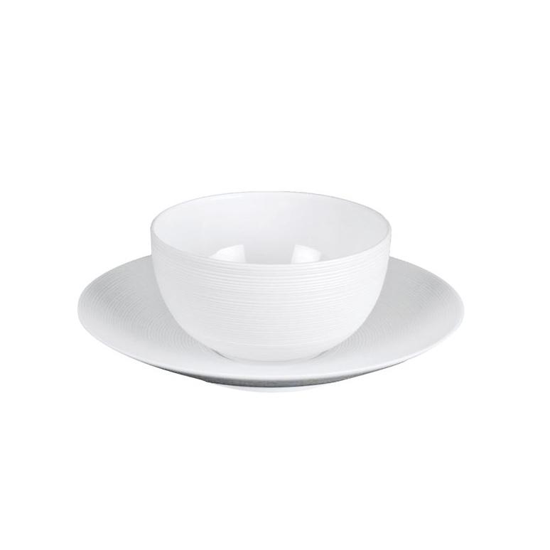Für die herausragende Qualität und weiße Farbe reift die Porzellan-Rohmasse bis zu drei Monate lang im Keller der Manufaktur, bevor sie rund 20 manuelle Arbeitsschritte durchläuft. Die handgezogenen Rillen sind von einer speziellen Mineral-Maske geschützt, die so robust wie eine traditionelle Glasur ist und dabei das biskuit-artige Aussehen des Porzellans bewahrt. "Hémisphère Weiß" ist kratzfest, mikrowellengeeignet und spülmaschinenfest und damit ideal für den professionellen und täglichen Gebrauch.