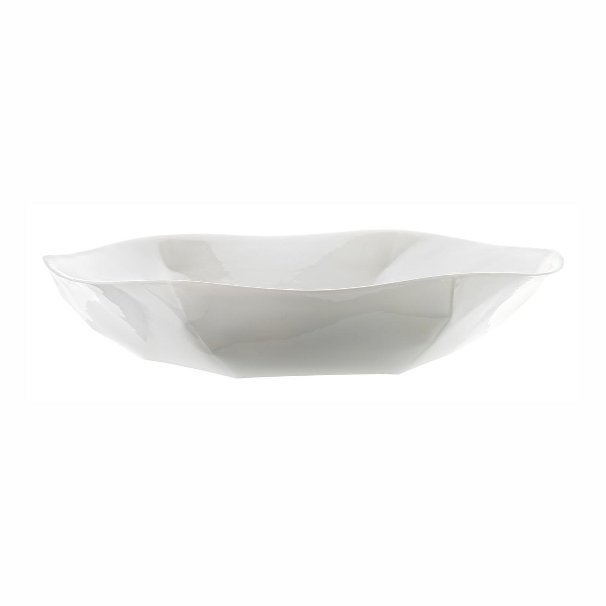 Künstlerin Ruth Garvich hat für dieses Porzellan zunächst handgeschöpftes Papier zu Vasen, Schalen und Tellern geformt. Aus den filigranen Modellen entstanden dann handgefertigte Porzellanobjekte, die Falten, Bögen und Spannungen der Papierentwürfe perfekt abbilden.