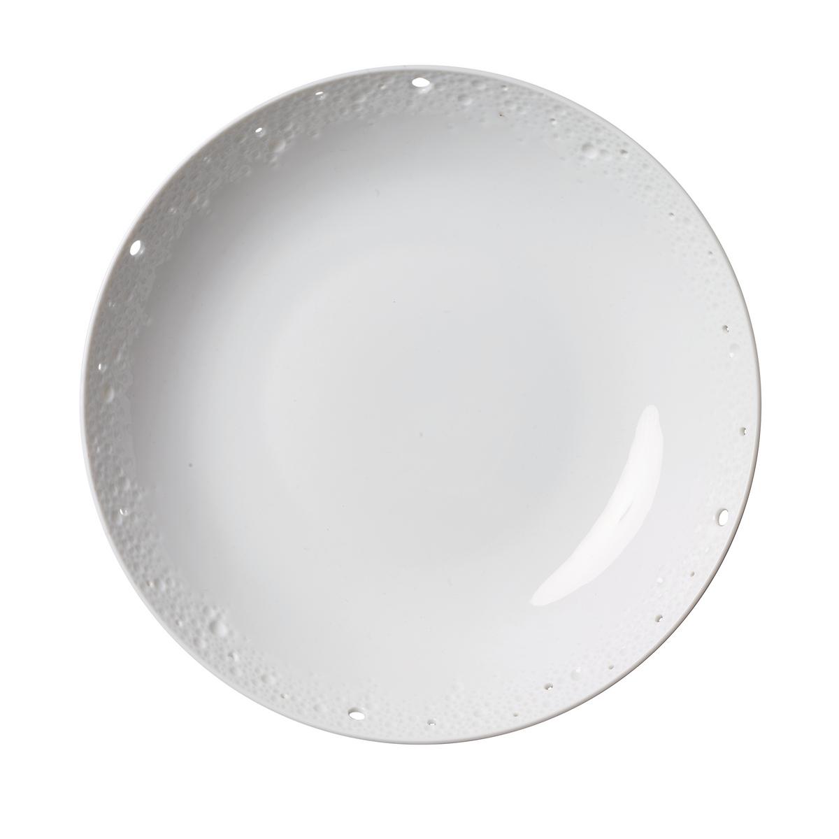 Das Service "Weiße Koralle" aus der Nymphenburger Porzellan Manufaktur ist einer der genialsten Entwürfe Ted Muehlings. Der New Yorker Designer fordert dabei den Münchner Porzellankünstlern alles ab. Inspiriert von der sinnlichen Oberfläche einer Koralle schuf Muehling hauchdünne Teller. Die Ränder sind zum Teil perforiert, zum Teil kunstvoll "abgebrochen". Diese Materialexperimente konnte Ted Muehling nur mit den erfahrenen Kunsthandwerkern der Nymphenburger Porzellan Manufaktur wagen. Diese stellen mit den anspruchsvollen Techniken aus dem 18. Jahrhundert noch heute Europas dünnstes Porzellan in reiner Handarbeit her.