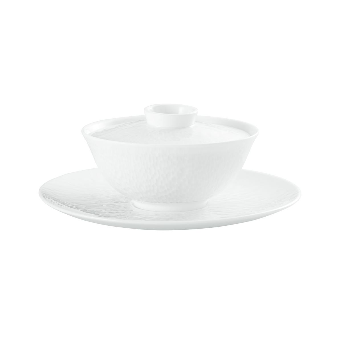 "Minéral Weiß" Chinesisches Suppenschälchen mit Deckel und Unterteller von Raynaud