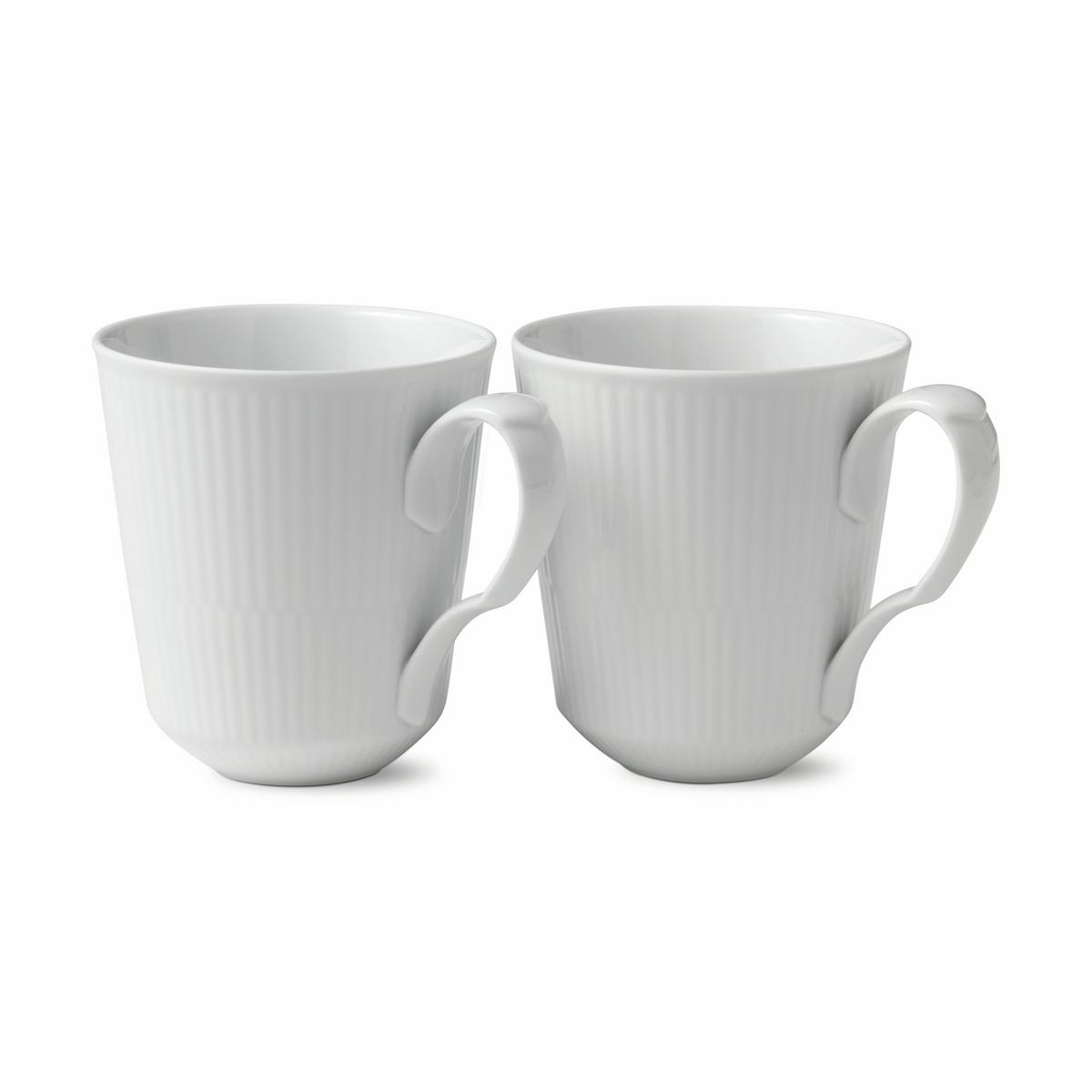 "Weiß Gerippt" Henkelbecher, 37 cl, 2er-Set von Royal Copenhagen