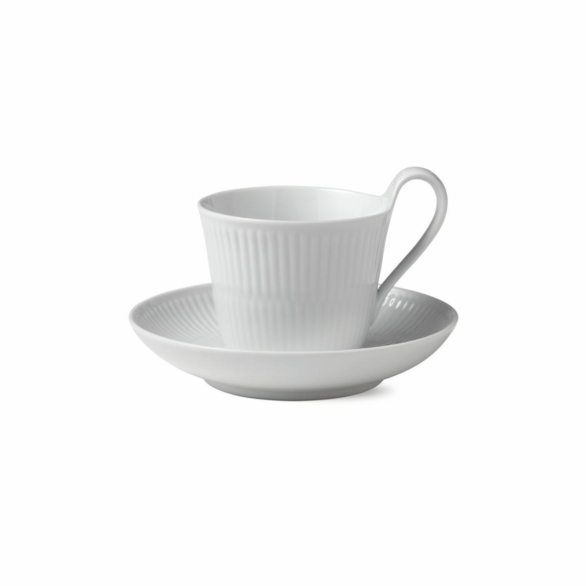 "Weiß Gerippt" Teetasse mit hohem Henkel und Unterteller von Royal Copenhagen
