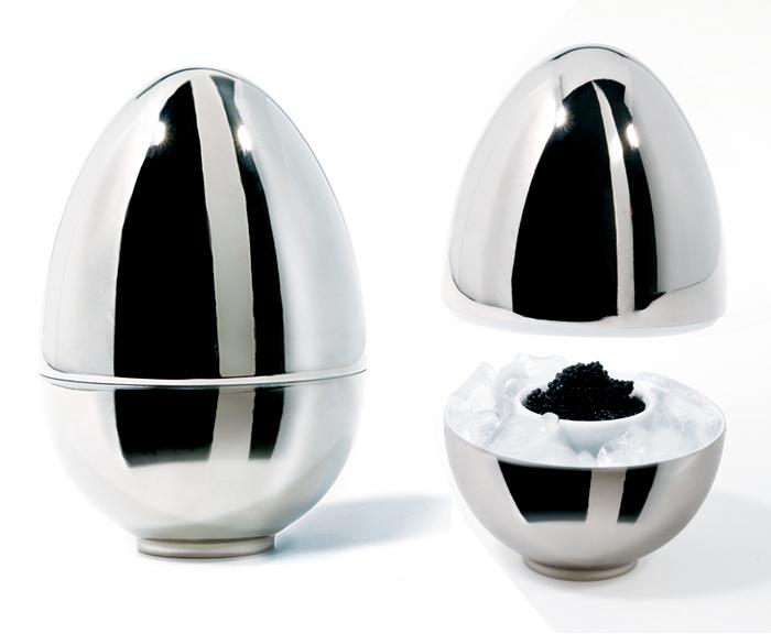 Die größere "Matroschka" eignet sich aufgrund des Innengefäßes auch bestens für Kaviar und Sorbets - siehe Abbildungen. Beide Größen sind in vielen verschiedenen Ausführungen erhältlich: in strahlend weißem Porzellan, mit verschiedenen Dekoren oder glamourös in reinem Gold und in 99% Platin.