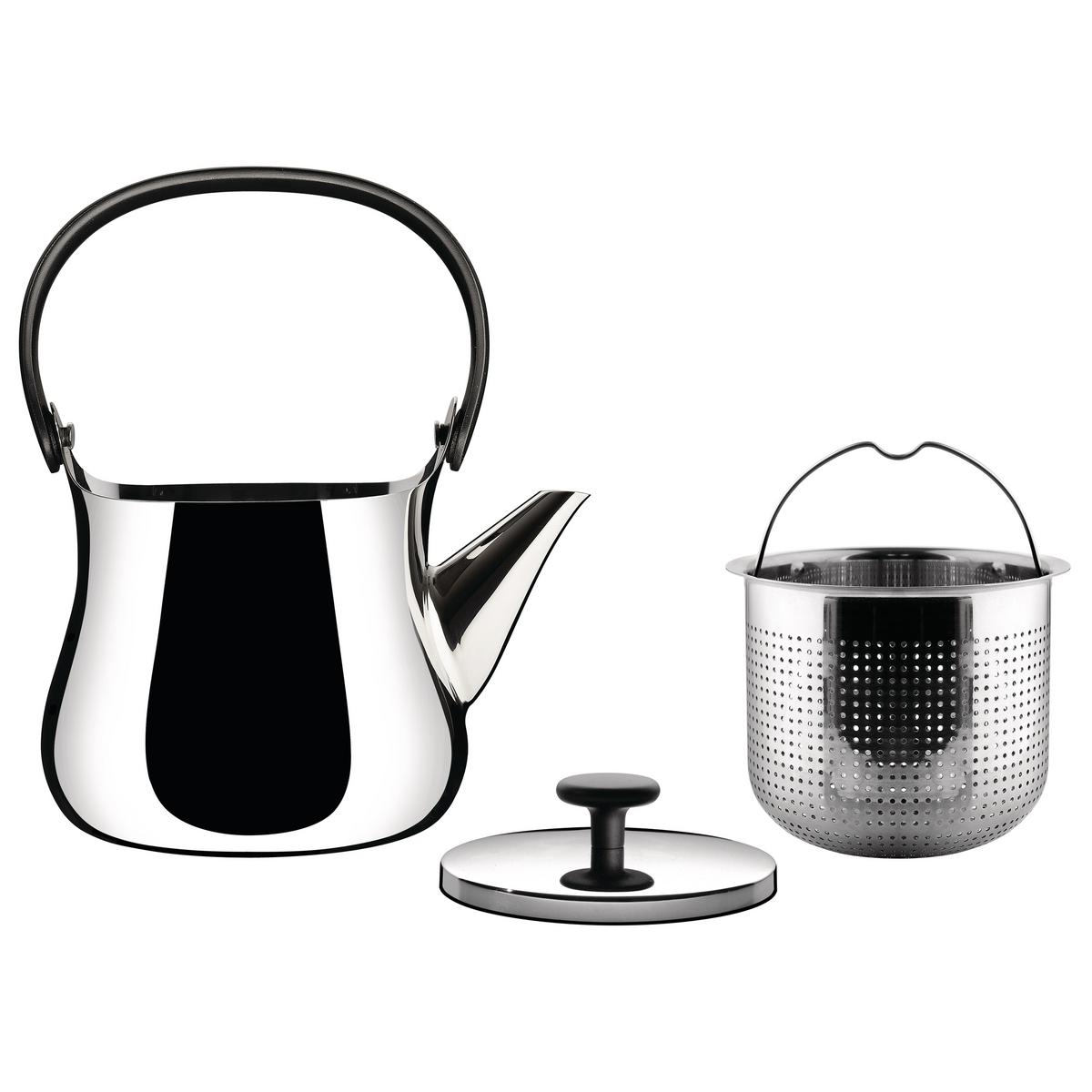 So ist die Teekanne "Cha" von Alessi die perfekte Kombination aus Wasserkessel und Teekanne in einem und besteht aus langlebigem Edelstahl. Die Teekanne "Cha" wird mit einen großen Filter für Teeblätter geliefert. Der Magnetboden aus Stahl ist auch für Induktionsherde geeignet.