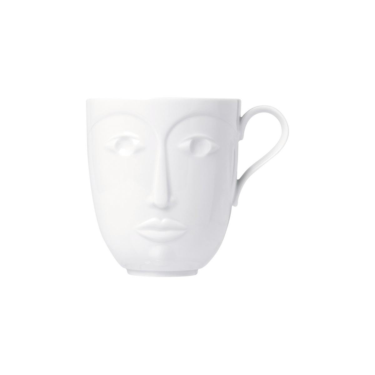 Das Gesicht auf dem Henkelbecher "Hot" von Sieger by Fürstenberg ist auf beiden Seiten dargestellt. Zwischen gewöhnlichen Bechern wird er garantiert herausstechen.