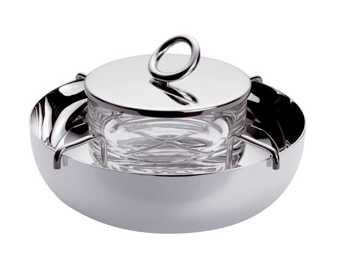 Andrée Putman hat die Serie „Vertigo“ um ein weiteres Glanzstück ergänzt: Die Kaviarschale bleibt der typischen Formensprache der Christofle-Kollektion treu und sorgt dafür, dass die kostbare Delikatesse standesgemäß und gut gekühlt serviert wird: in einer geschmacksneutralen Glasdose. In der Silberschale darunter können Sie zur Kühlung ein Eisbett bereiten. Mehr von "Vertigo" finden Sie unten.