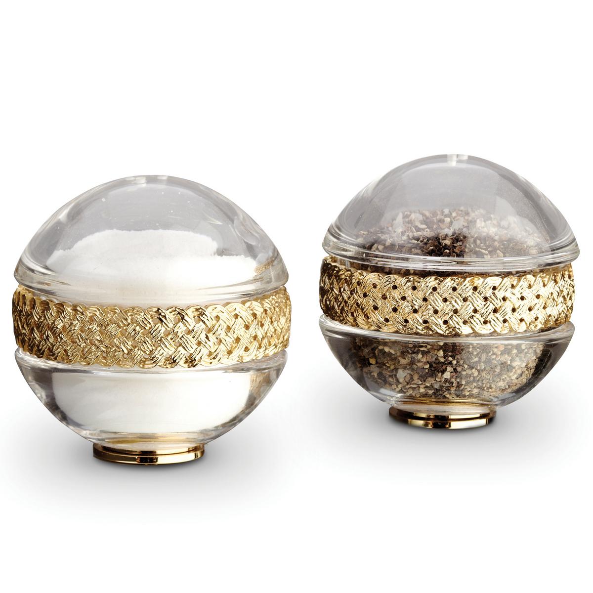 In den Salz- und Pfefferstreuern "Braid" von L’Objet liegen die Gewürze wie in einem edlen Schaukasten: Sicher aufbewahrt hinter Kristallglas. Ein edles Schmuckband aus geflochtenem, 24-karätig vergoldetem oder platiniertem Messing ziert ihren Bauch, welches so kunstvoll geschmiedet ist wie ein luxuriöser Armreif.