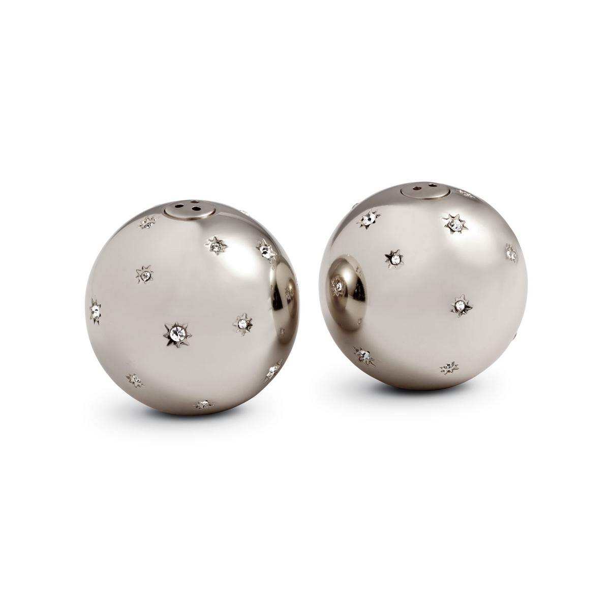 Salz- und Pfefferstreuer sind auf dem Tisch nicht wegzudenken. Einen besonders glanzvollen Auftritt liefern die Salz- und Pfefferstreuer "Stars" von L'Objet. Auf einer runden Form funkeln weiße Swarovski Kristalle im Platin oder 24-karätigem Gold und präsentieren Gewürze äußert innovativ und dekorativ.