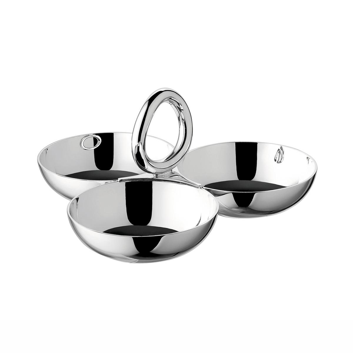 Platz für dreierlei Knabbereien bieten die versilberten Schälchen aus der Serie "Vertigo" von Christofle.