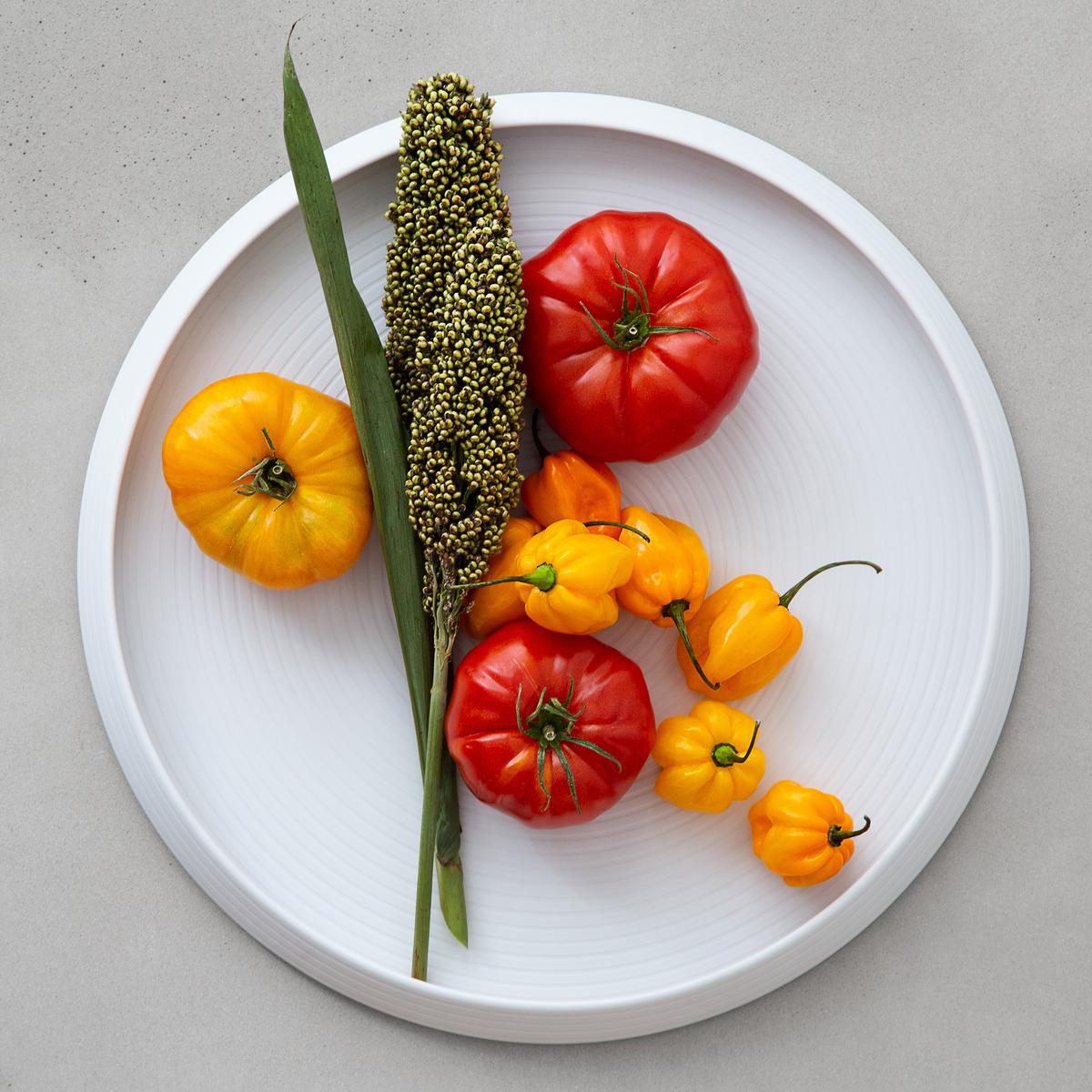 "Seit 1992 produziert die Keramikmeisterin und Designerin Stefanie Hering in ihrer Berliner Manufaktur Porzellan, Tischwäsche, Gläser und Leuchten. Für unser Menü haben wir Geschirr ihrer Kollektion Noble gewählt: Klar und puristisch mit feinen Details lässt es das Essen besonders schön strahlen. Bei aller Eleganz ist Herings Porzellan spülmaschinenfest und spiegelt dabei die Freude an zeitgemäßer gehobener Gastlichkeit."