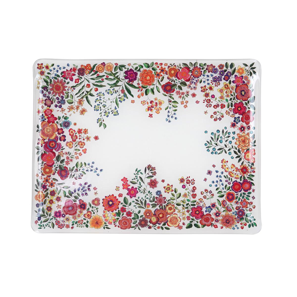 Alle Freunde der opulenten und farbenfrohen Dekore aus der Fayencerie de Gien dürfen sich jedenfalls freuen. Denn die aufwändig gestalteten Landschaften, Blüten, Früchte, Stadtansichten und anderen eindrucksvollen Motive der Designer und Künstler aus dem Hause Gien können Sie auch großflächig genießen: auf einem solide verarbeiteten Acryl-Tablett.