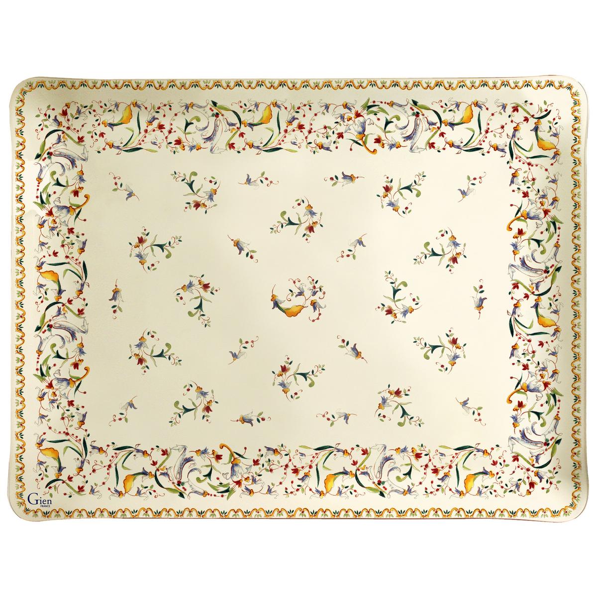 Gien gestattet vielen der beliebten Dekore seines Tafelgeschirrs eine erheblich breitere Entfaltung als auf Tellern oder Tassen. Etwa auf 46,4 x 36,4 cm Zentimetern als Illustration tragfähiger Serviertabletts. Im kleineren Format ist das jeweilige Acryl-Tablett 37 x 28,3 Zentimeter groß.