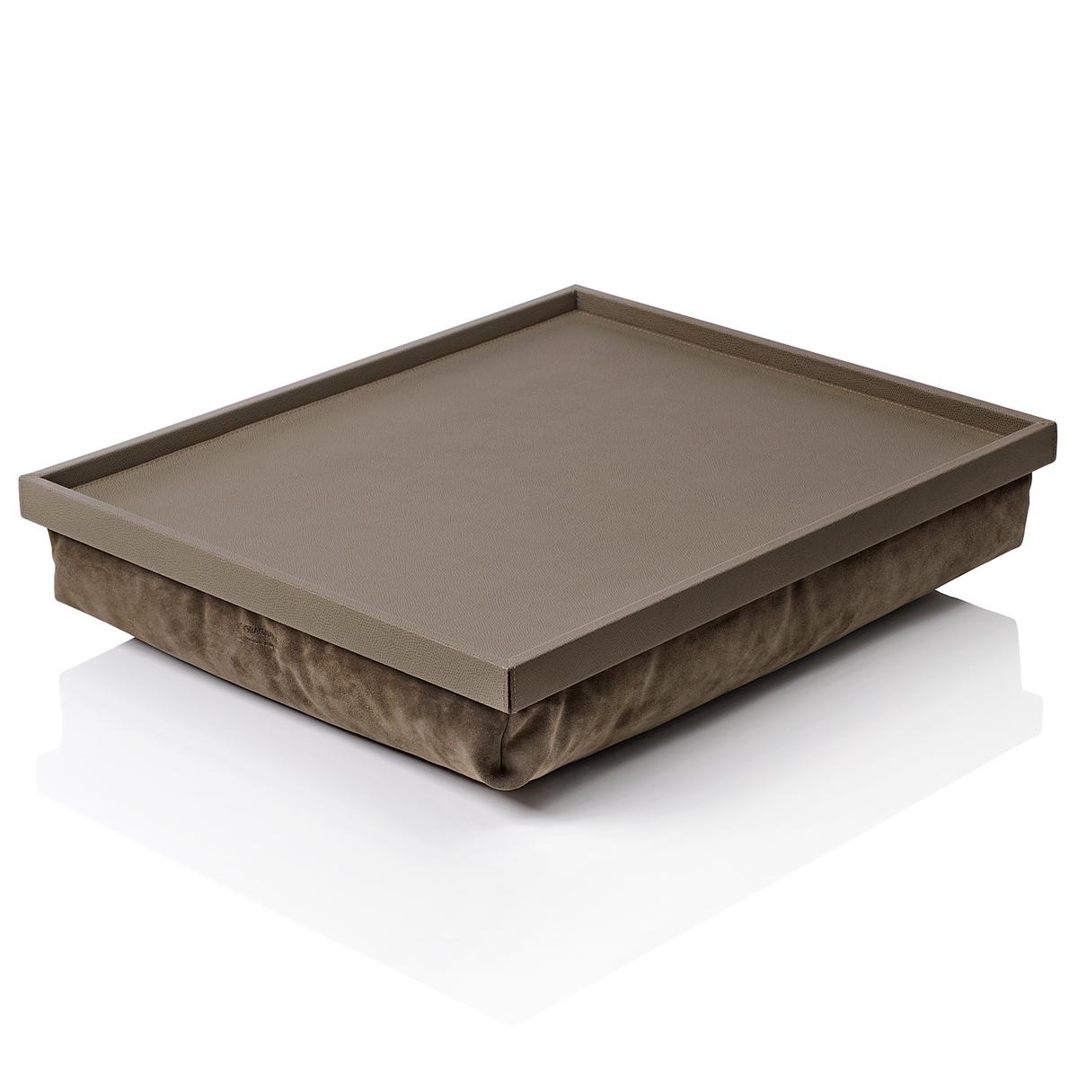 Ob im Bett frühstücken oder auf dem Sofa am Tablet oder Laptop arbeiten - die Polstertabletts "Teddy" von GioBagnara sind echte Allrounder. Das weiche Polster aus Veloursleder ist mit Mikroperlen gefüllt, damit das Tablett im Gleichgewicht bleibt. Und wenn doch mal ein Glas umfällt? Kein Problem: Die wasserabweisende Lederoberfläche trotzt Flecken jeglicher Art und lässt sich mit einem weichen Tuch und milder Seife leicht reinigen.