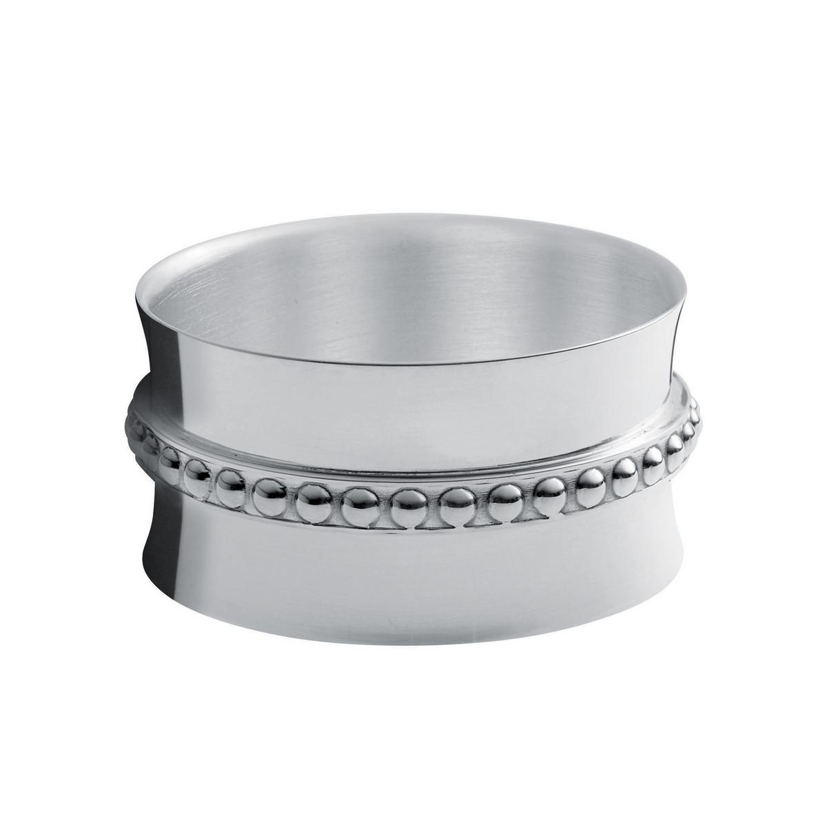 Die Serie "Perles" spielt dabei virtuos mit einem Perlenmotiv. Um den Serviettenring und um den Boden von Taufbecher und Eierbecher windet sich ein dezentes Perlenornament. Die fein geschwungenen Becher setzen zudem mit zwei schmalen Rillen einen sachten Kontrast zum Perlenrelief.
