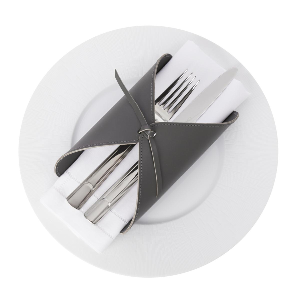 In den ausgefallenen Servietten- & Besteckmanschetten "Cannolo" der italienischen Ledermarke Rabitti 1969 hat auch die schlichteste Serviette ihren ganz großen Auftritt. Dank ihrer Größe kann ein Set bestehend aus Besteck und Serviette bequem in der Ledermanschette dekoriert werden. Der Lederexperte Rabitti 1969 hat mit den Servietten- & Besteckmanschetten "Cannolo" eine pfiffige Alternative zum klassischen Serviettenring und zum klassisch gedeckten Tisch geschaffen.