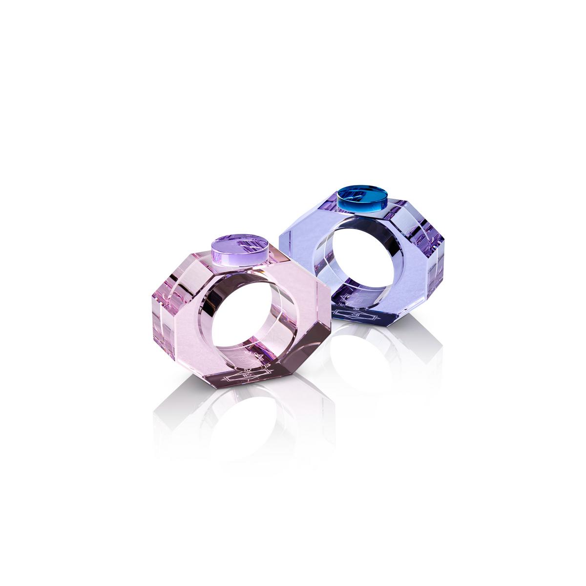 Die Serviettenringe "Shelby" sind als Zweier Sets in zwei Farbkombinationen erhältlich, Gelb und Grün sowie Rosa und Lila. Der perfekte Glanz des glamourösen Kristallglases hat eine unerreichte Strahlkraft, der Ihre Tafel verzaubern wird. Spielen Sie thematisch mit den Assoziationen des Ringmotivs, von Verlobungen über Jahrestage bis zum wortwörtlichen Tafelschmuck.