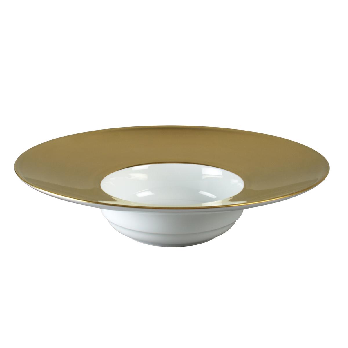 Im Kontrast zu den puristisch strengen Formen der Linie "Asia Gold" steht der Luxus edler Oberflächen. Das Porzellan von J.L Coquet ist mit 24-karätigem Gold überzogen.