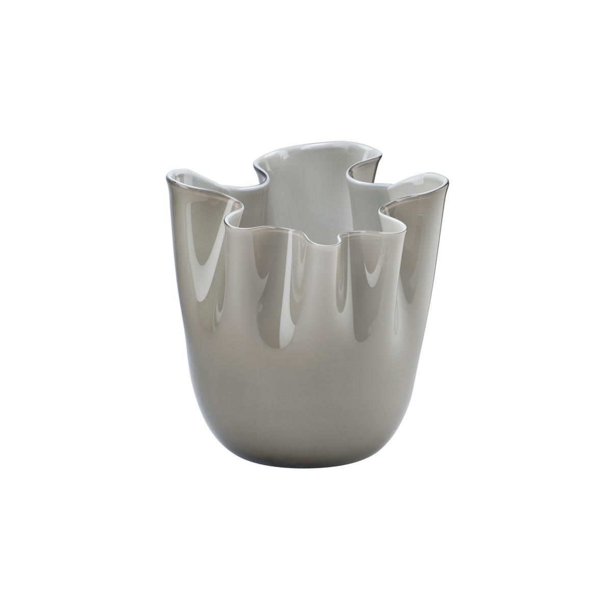 Die Fertigung einer Vase "Fazzoletti Opalino" in Taupe verlangt von den Venini Glasbläsern besonders viel Kunstfertigkeit und Feingefühl. Wenn der Glasmeister eine Glaskugel geblasen hat, schneidet er diese auf. Durch geschickte Schleuderbewegungen ergibt sich die Form der Vase, welche an ein aufgestelltes Taschentuch erinnert. Daher stammt auch der Name: "Fazzoletto" bedeutet aus dem italienischen übersetzt Taschentuch. Jede Vase von Venini ist ein handgefertigtes Unikat und besitzt eine individuelle Form.