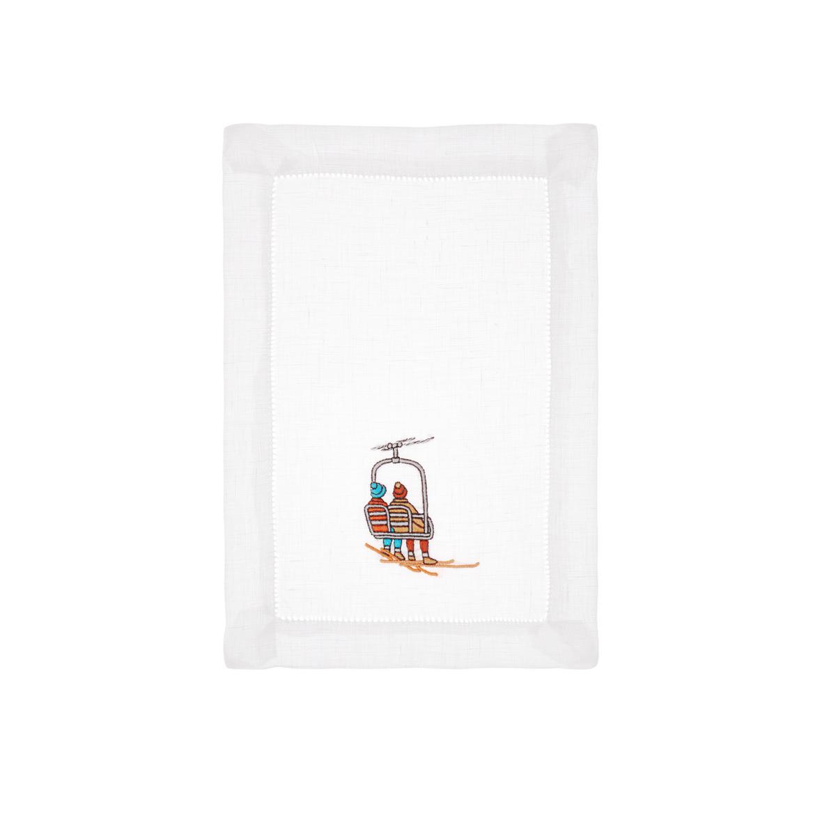 Schüren Sie die Vorfreude auf die nächste Abfahrt mit der Leinentischwäsche "Auf'i geht's" von Eri Textiles. Die Servietten, Platzsets und Cocktailservietten sind handbestickt mit drei stimmungsvollen Dessins von putzigen Skifahrenden auf ihrem Weg zur Piste. Ein gefasster Hohlsaum umrahmt die Motive und verleiht dem reinen Weiß des puren Leinenstoffes die Anmut einer weiten Schneelandschaft. Ob für die Berghütte, das Ferienhaus oder den heimischen Tisch, "Auf'i geht's" bringt Ski-Begeisterte für die gesamte Saison zum Träumen.