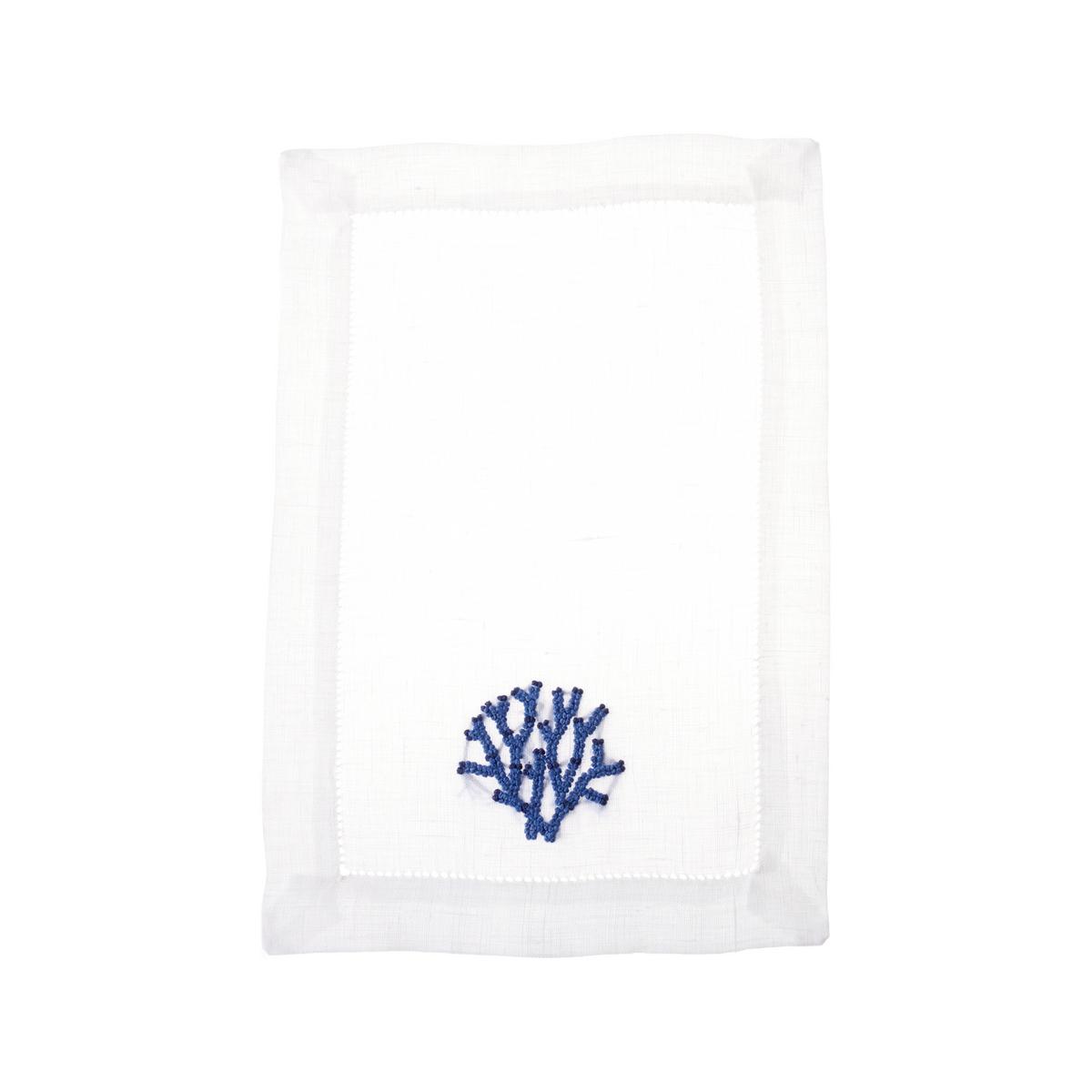 Handbestickt ist jedes einzelne Stück ein sorgfältig hergestelltes Baumwoll-Meisterwerk. Zu der frischen Serie "Koralle Marine" gehören Servietten, Platzsets und Läufer.