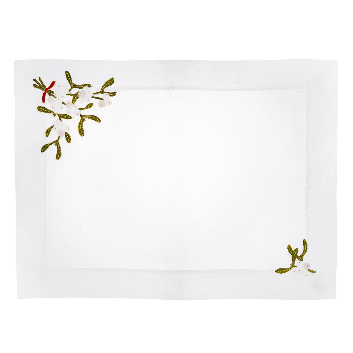 Mit der Leinentischwäsche "Mistelbund" von Eri Textiles können Sie sich schon in der Vorweihnachtszeit auf das Weihnachtsfest einstellen. Schon seit Jahrhunderten gehören die immergrünen Mistelzweige zur weihnachtlichen Dekoration. In England wird ein Mistelbund zur Weihnachtszeit traditionell über der Haustür angebracht. Ebenso ist das Glück verheißende Küssen unter dem Mistelzweig ein lang gehegter Brauch.