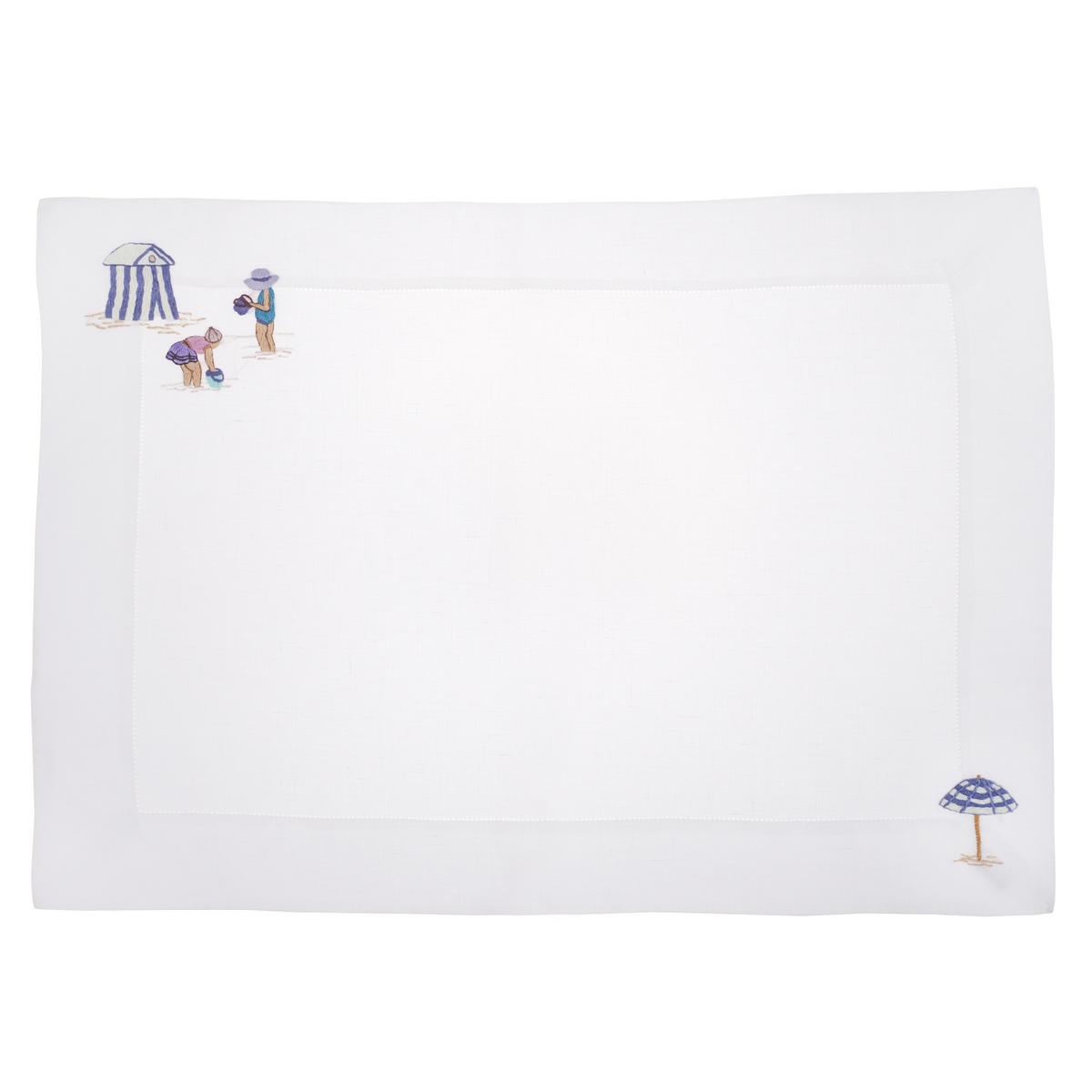 Sommerurlaub zuhause gelingt mit der Tischwäsche "Strandleben" von Eri Textiles: Die Servietten, Platzsets, Tischläufer und –Decke werden von unterschiedlichen Strand-Motiven geziert. Kinder beim Sandburgen bauen, blau-weiße Sonnenschirme und Gummiboote sind von Hand auf die hochwertigen Leinenstoffe gestickt und rufen beim Betrachter Erinnerungen an entspannte Tage am Meer hervor. Gerade wenn eine Tafel komplett mit der Tischwäsche "Strandleben" von Eri Textiles gekleidet ist, entfaltet sie ihren vollen, maritimen Charme.