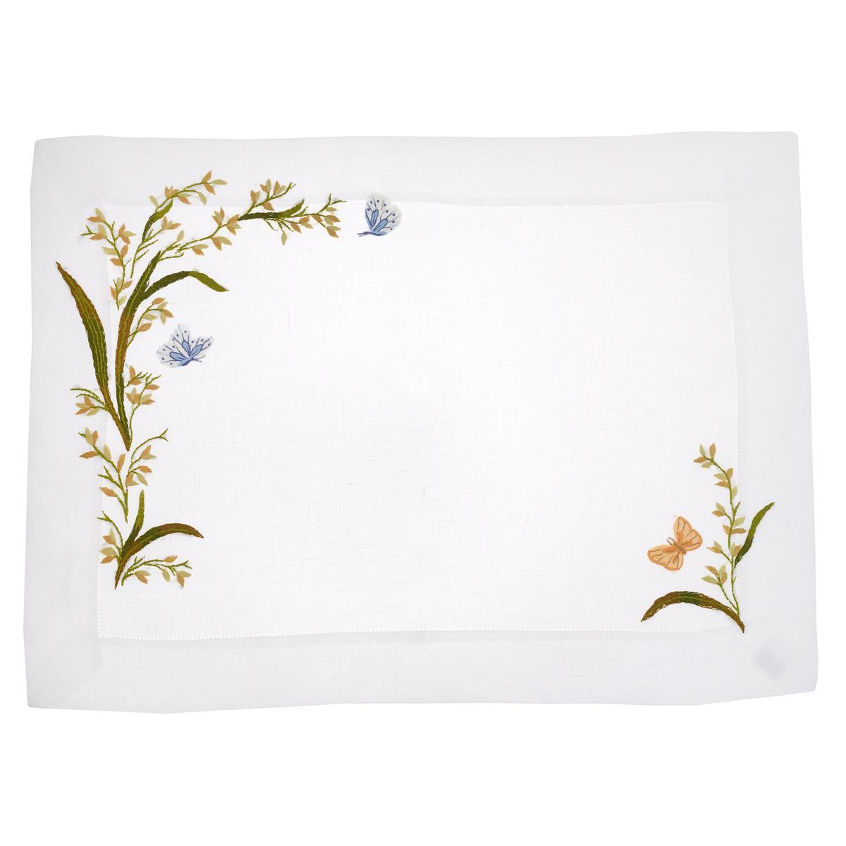 Die hochwertige Leinentischwäsche "Wiesengrund" von Eri Textiles ist mit einem feinen Hohlsaum eingefasst. In liebevoller Handarbeit wird jedes Stück aus der Leinentischwäsche "Wiesengrund" von Eri Textiles von Hand bestickt.