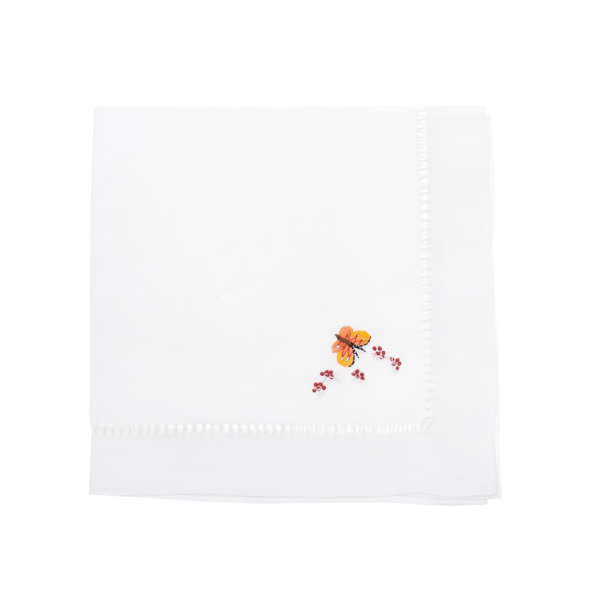 Diese edle Tischwäsche macht aus Ihrem Tisch eine fröhliche Blumenwiese. Blumen, Blätter und liebe kleine Freunde wie Marienkäfer und Schmetterling tummeln sich auf dem handbestickten Leinen. Auf Wunsch werden auch Tischdecken in Sondermaßen angefertigt (Sondermaße nur auf Leinen möglich, Lieferzeit zwei bis drei Monate).