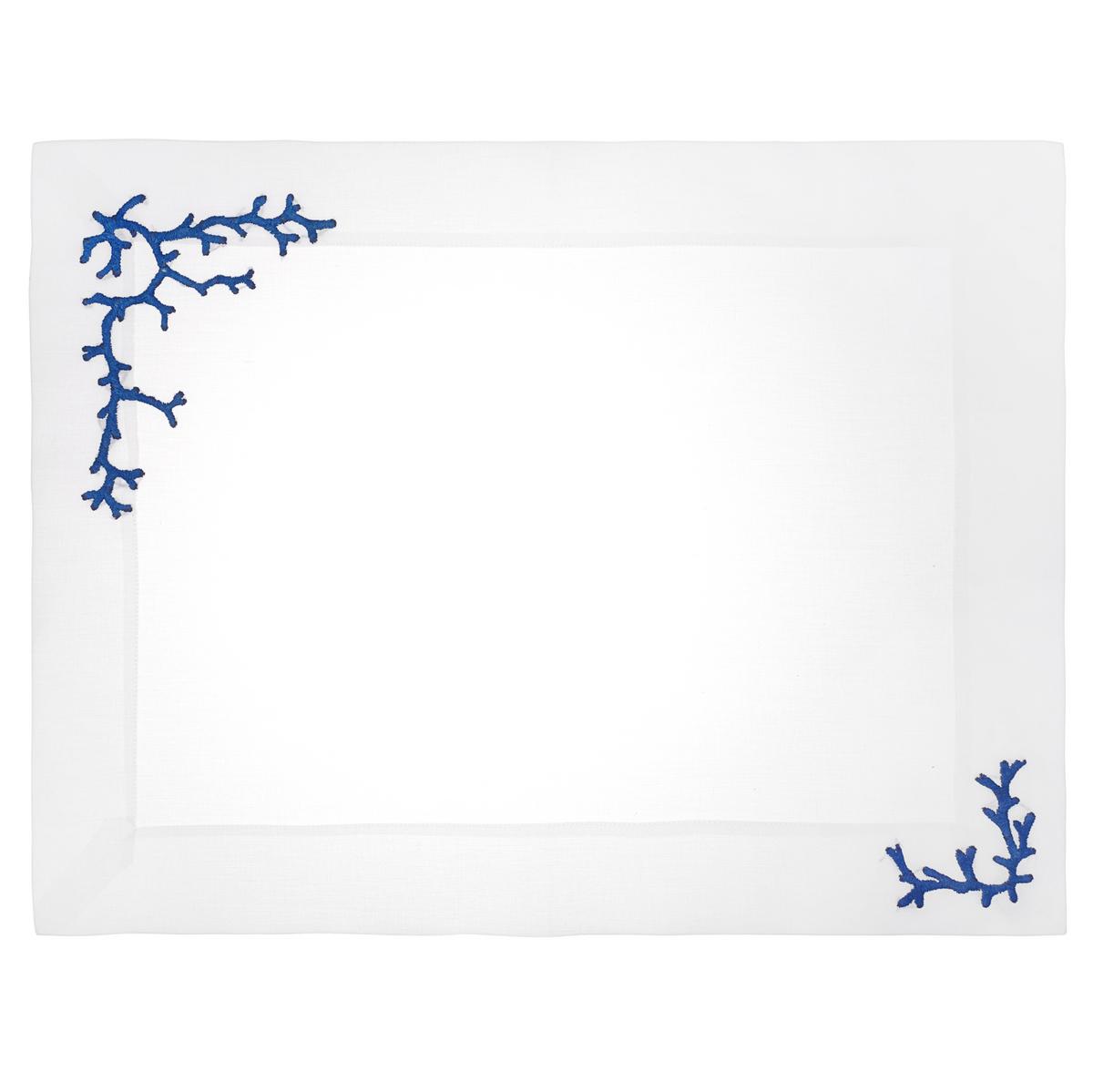 Handbestickt ist jedes einzelne Stück ein sorgfältig hergestelltes Baumwoll-Meisterwerk. Zu der frischen Serie "Koralle Marine" gehören Servietten, Platzsets und Läufer.