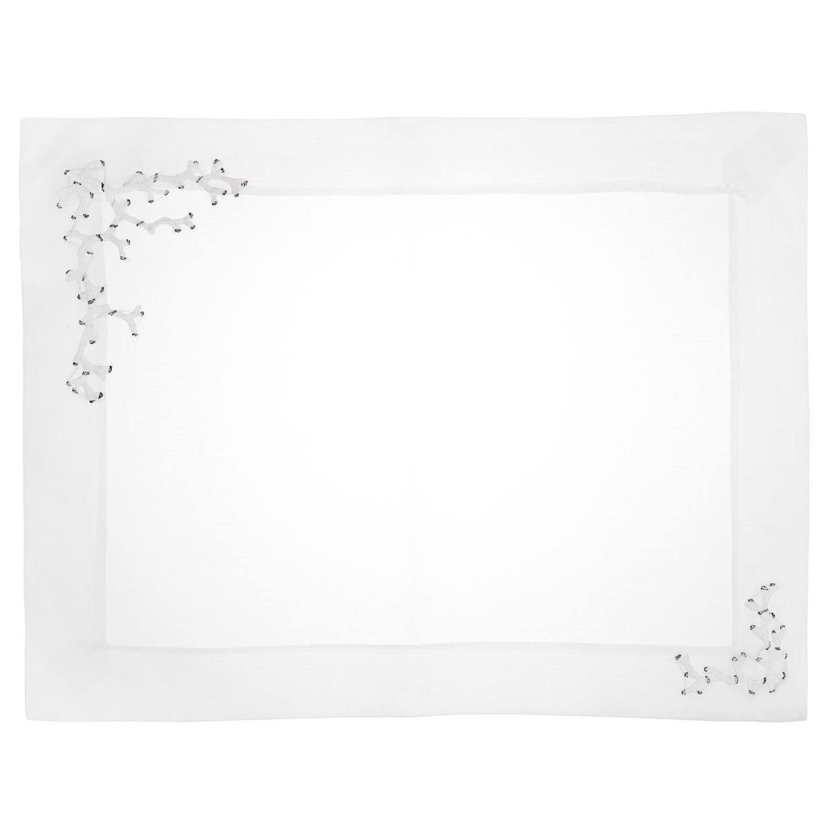 Einen Hauch von Südsee Feeling zaubert die Tischwäsche "Koralle Weiß-Silber" auf Ihren Tisch. Die gestickten weißen Korallen besitzen edle Akzente in Silber. Durch ihre schlichte Eleganz passt die Baumwolltischwäsche von Eri Textiles gut zu unterschiedlichen Tischdekorationen.