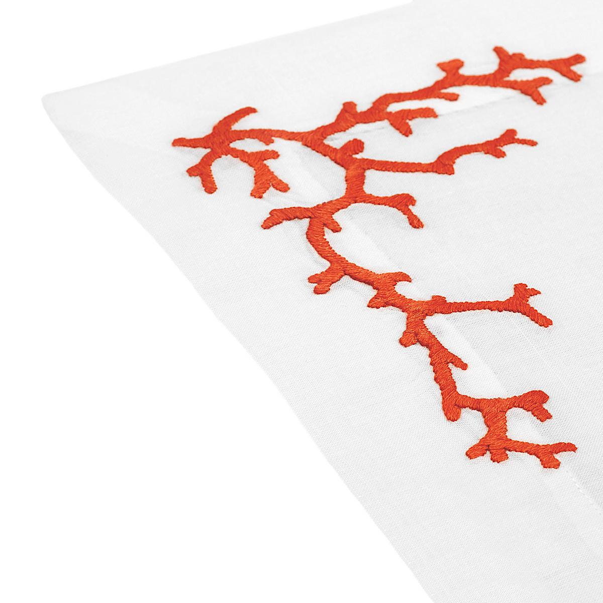 Es sind ihre eigenwilligen bizarren Formen und ihre Seltenheit, die Korallen so begehrenswert machen. Besonders edel wirken die "wilden Schwestern der Perlen" handbestickt auf der weißen Baumwolltischwäsche, zu der Läufer, Servietten und Platzsets gehören.