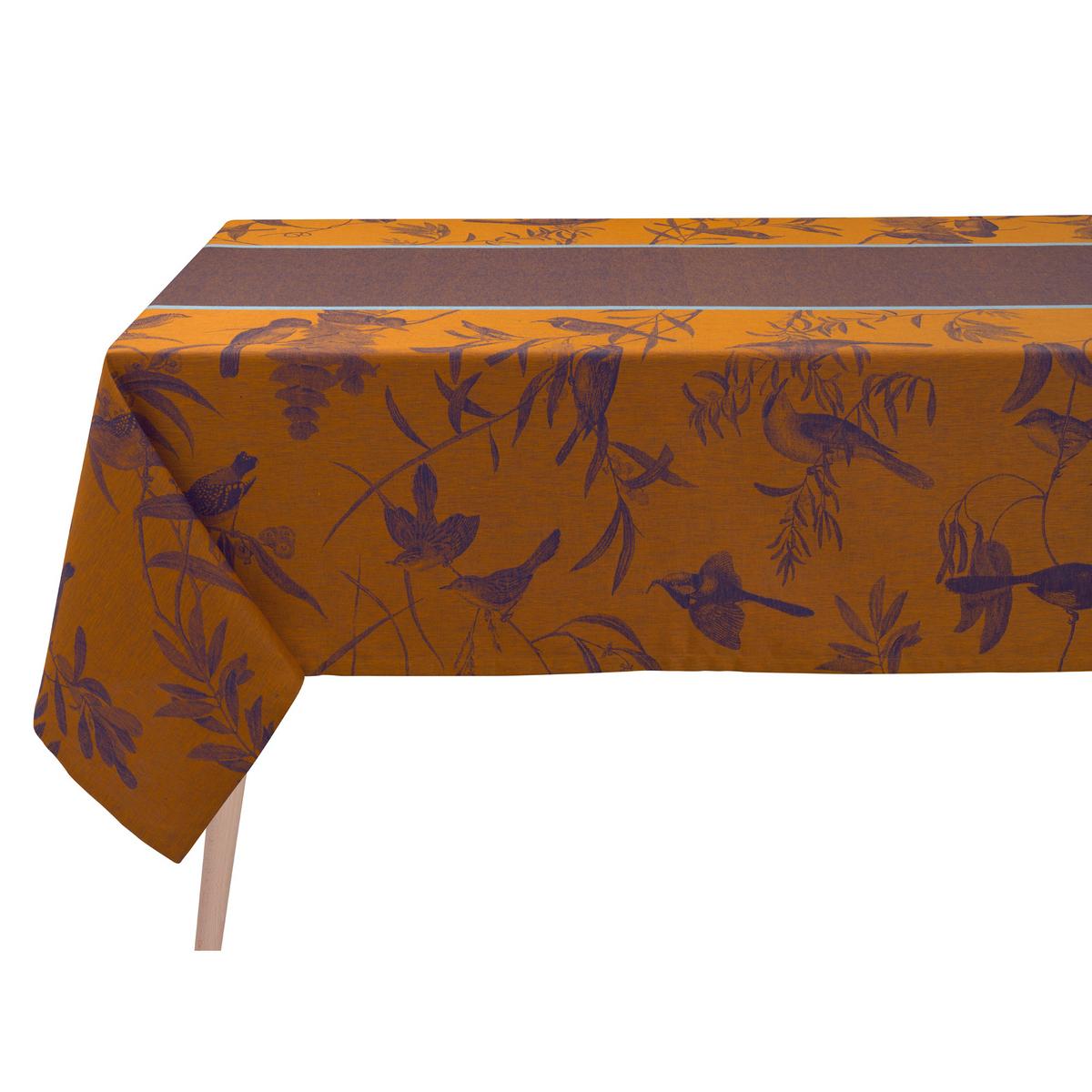 Sanft, elegant und grenzenlos: Die Leinentischwäsche "Voliere" in blau-orange ist eine Kollaboration von Le Jacquard Français und dem High-End Tapetenstudio Quinsai. Auf den feinen Leinenstoffen tummelt sich eine Schar an Vögeln zwischen zarten Zweigen und Ranken. Das raffinierte Endlos-Design wirkt wie ein Fenster in eine andere Welt. Detailreich und präzise gewebt, trifft die Tischwäsche "Voliere" eine einzigartige Balance zwischen Natur und Ordnung. Die kontrastreiche Kombination aus blauem Muster und orangefarbenem Grund wirkt lebendig, hell und modern – ideal für herbstliche Feierlichkeiten.