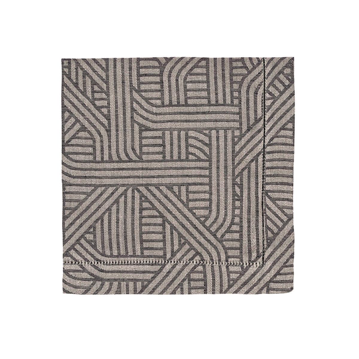 "Spiel aus Licht und Schatten! Ein monochromes, zwischen positiv und negativ changierendes Jacquardmuster, das ausschließlich aus Linien besteht, macht den Zauber der edlen Leinenservietten aus."