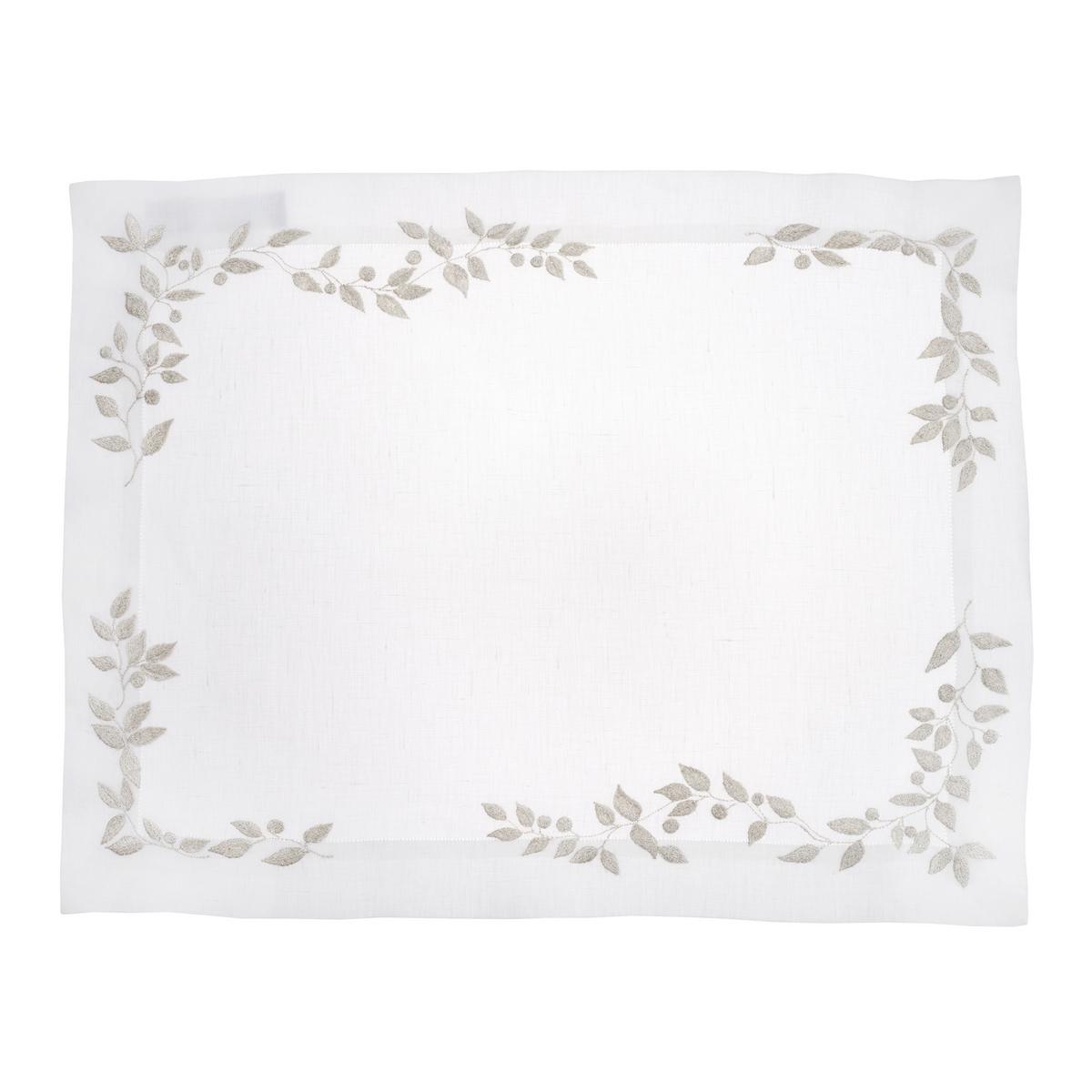 Die Tischwäsche "Feuilles d’Olivier" in Silber von Porthault wirkt besonders edel. Die handbestickten Olivenzweige bilden einen schönen Rahmen und passen hervorragend zu einer weißen oder silberfarbenen Tafel. Ob als Zeichen des Friedens oder als Erinnerung an Olivenbäume des Mittelmeeres, Olivenzweige sind ein wunderschönes mediterranes Motiv.