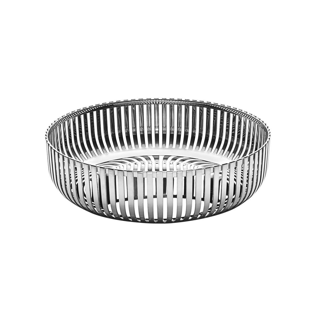 Minimalisten werden den Brot-/ Obstkorb "Pierre Charpin" von Alessi lieben: Denn er besinnt sich auf das Design-Mantra "Weniger ist Mehr". Schmale Metallstreben sind in gleichmäßigen Abständen zu einem Korb hochgezogen. Die Lücken zwischen Ihnen ermöglichen Einblicke in den Inhalt des Korbes.