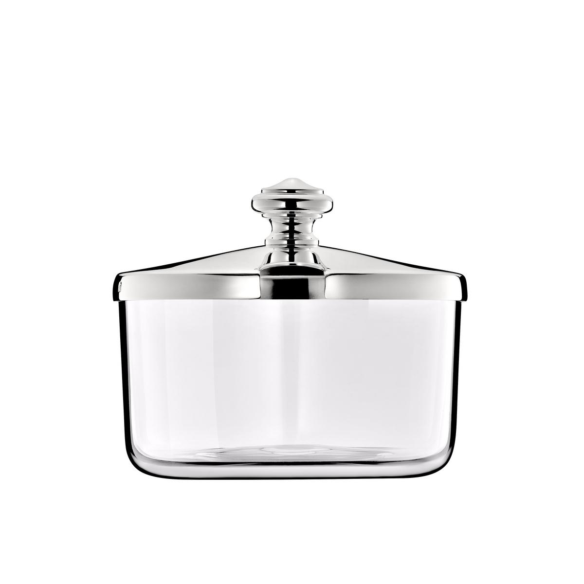 Die Parmesandose "Albi" von Christofle besteht aus hochwertigem Kristallglas und besitzt einen versilberten Deckel. Selbstverständlich eignet sich das vielseitige Gefäß auch für andere Köstlichkeiten wie Marmelade oder Honig.