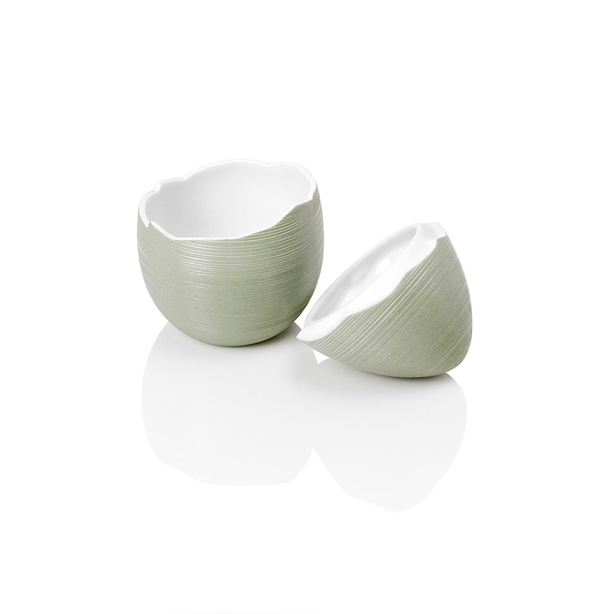 In den originellen Broken Eggs "Hémisphère" von J.L Coquet lässt sich zum Auftakt eines festlichen Menüs ein "Amuse Gueules" in Form einer kleinen Vorspeise oder Suppe stilvoll servieren. Ebenso passend sind die schönen "Eidosen" für einen kleinen Nachtisch oder die Präsentation von edlem Kaviar. Bitte beachten Sie, dass das Broken Egg aufgrund seiner Größe leider nicht als Eierbecher verwendet werden kann.