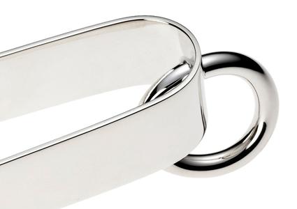 The silverplated "Vertigo" ice tongs were designed by Andrée Putman for the leading silverware company Christofle. Their design is based on a very innovative idea, and the elegantly looped ring on the top is a characteristic feature of the "Vertigo" collection.
