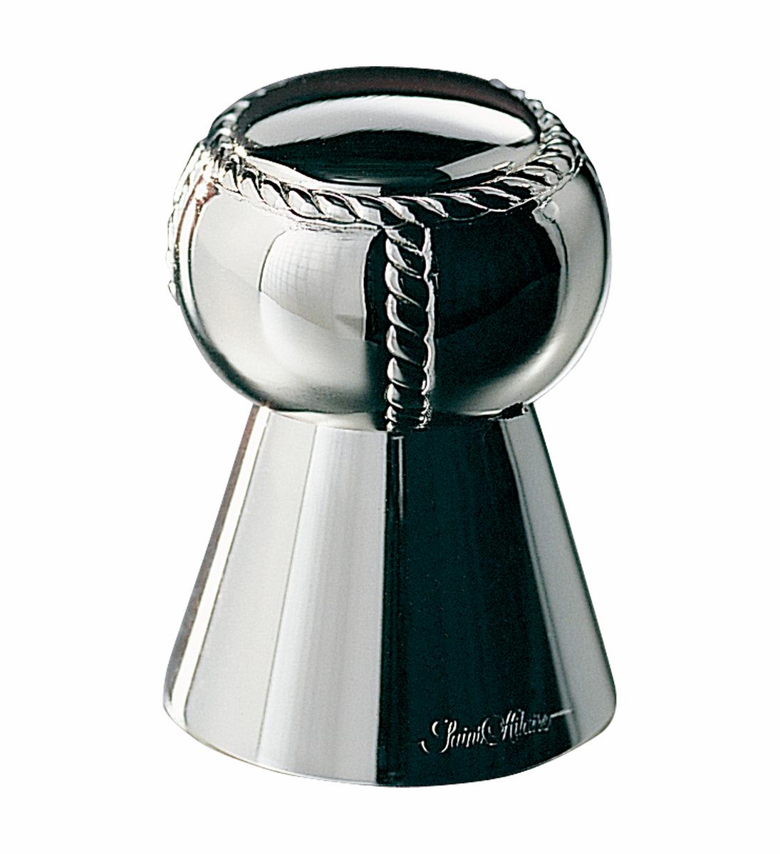 The cool elegance of the silverplated bottle stopper underlines the finely chased cord pattern, which is the result of an intricate handcrafted process. The ornament imitates the shape of the classic muselet found over the Champagne cork.