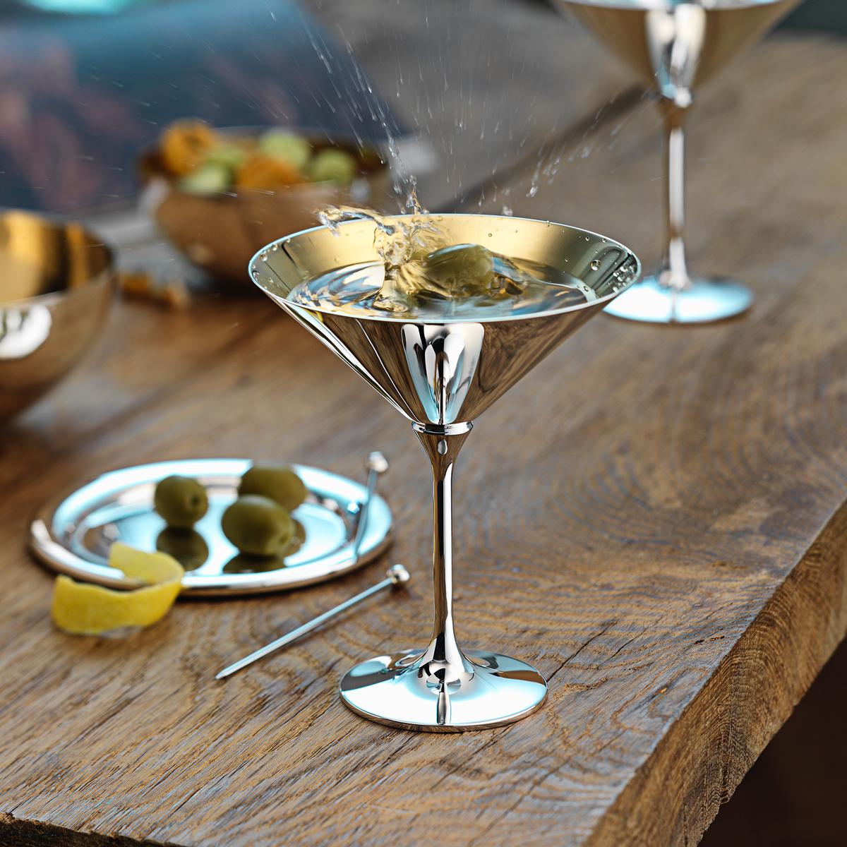 The glasses from the bar collection offer a new pleasure experience. The high temperature conductivity of the silver ensures that each glass assumes the temperature of the drink. Unlike other materials, you can immediately feel and taste the pleasant coolness and freshness. A further advantage of silver is that it is shatterproof, unlike crystal glass.