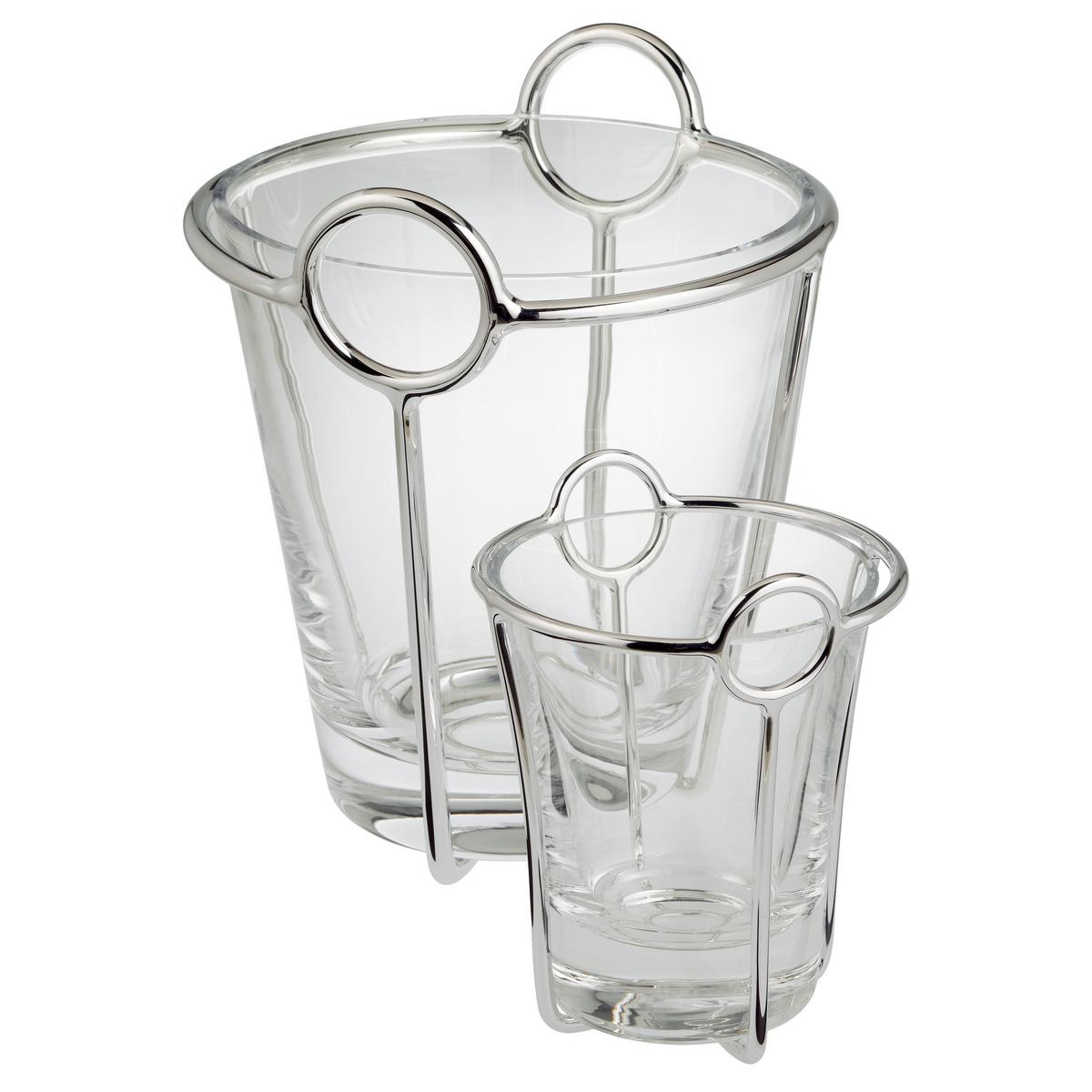 The shape of the "Latitude" Champagne cooler and ice bucket makes one think of a basket with short handles: The crystal glass basket is embedded in a silverplated frame, which has large round rings on two sides. These gleaming rings are "gripping" in all senses. They also have a practical purpose, namely to facilitate the transport of the "Latitude" Champagne cooler and ice bucket from Ercuis.