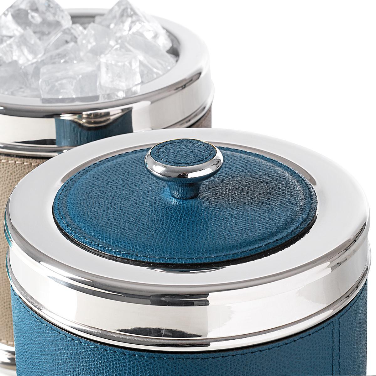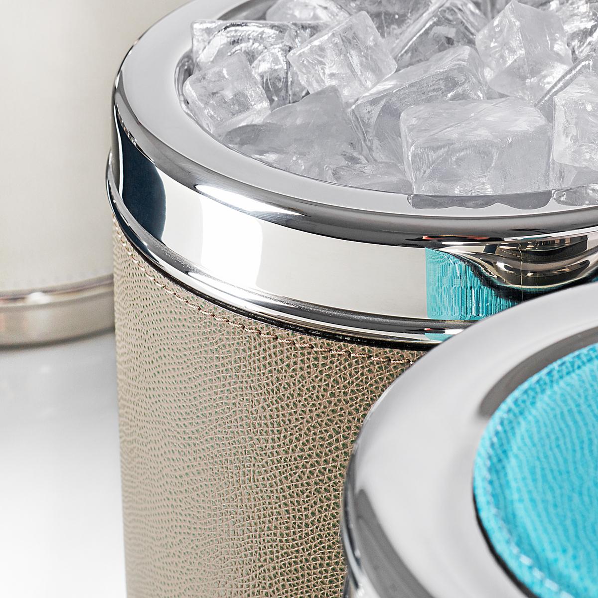 The "Ocean" ice buckets from GioBagnara look elegant and are also very practical. The combination of chrome-plated steel and calfskin is particularly charming. Even the base of the "Ocean" ice bucket is covered with calf leather. So that your ice cubes last for as long as possible, the "Ocean" ice bucket from GioBagnara is heat insulated. The practical lid also provides additional insulation.
