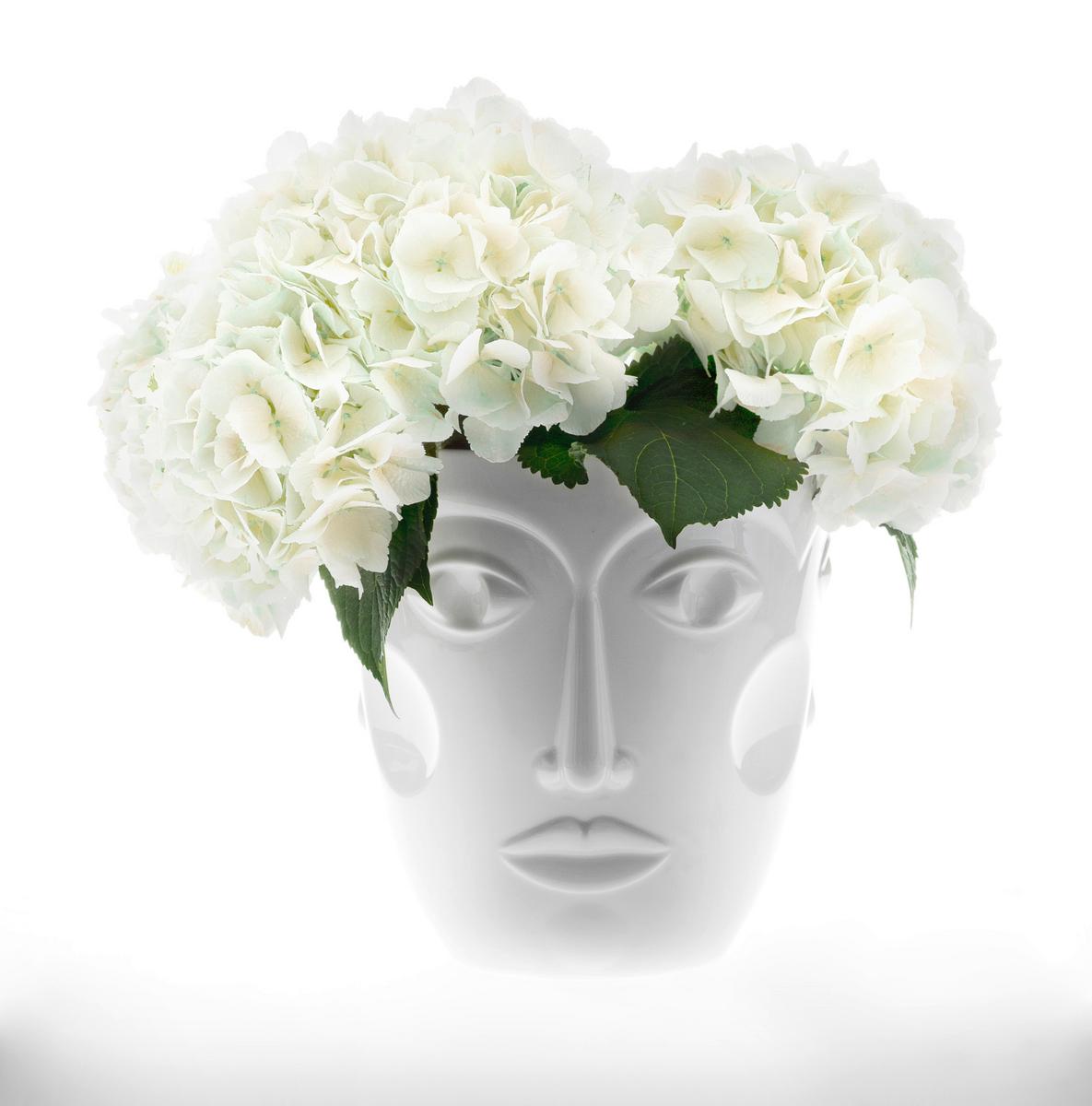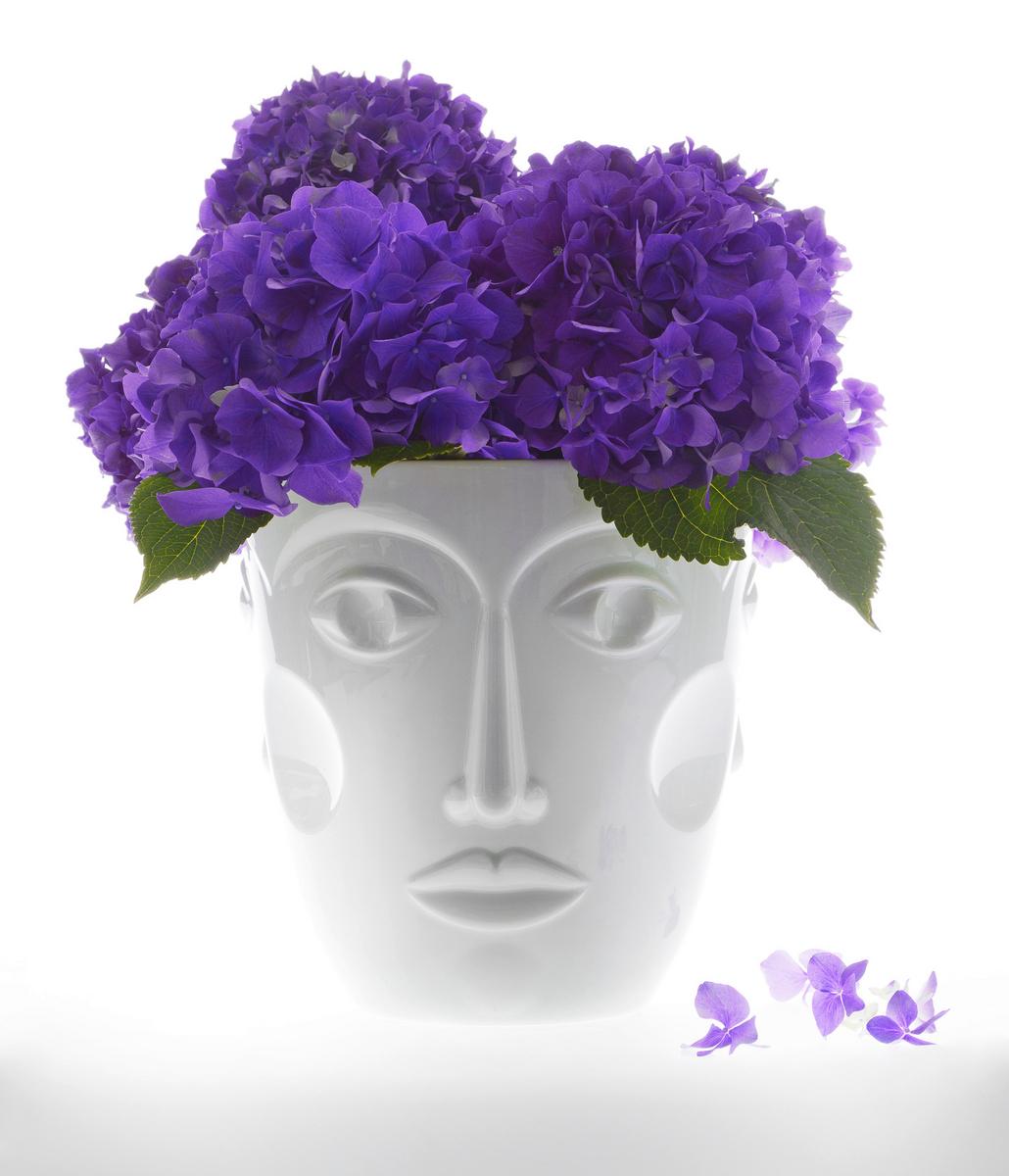 Used as vases, these porcelain creations from Sieger by Fürstenberg are transformed into semi-live sculptures with floral hairstyles – a fascinating chimera, which demands attention.