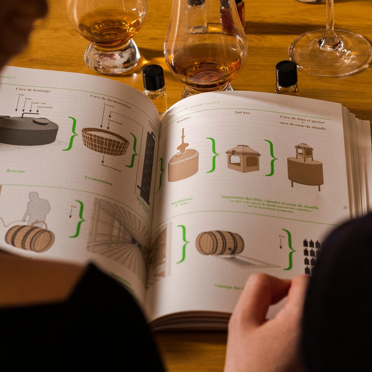 The 12 aromas of "Le Nez du Bourbon" represent the olfactive notes most often cited in scientific literature. They are grouped in families on the aroma wheel which accompanies the book. The individual aromas are contained in glass vials. You can "inhale" the individual aromas and compare them directly to the whiskey you are tasting. The "Le Nez du Bourbon" set by Jean Lenoir is available in a French and English version and is delivered in a high-quality case.