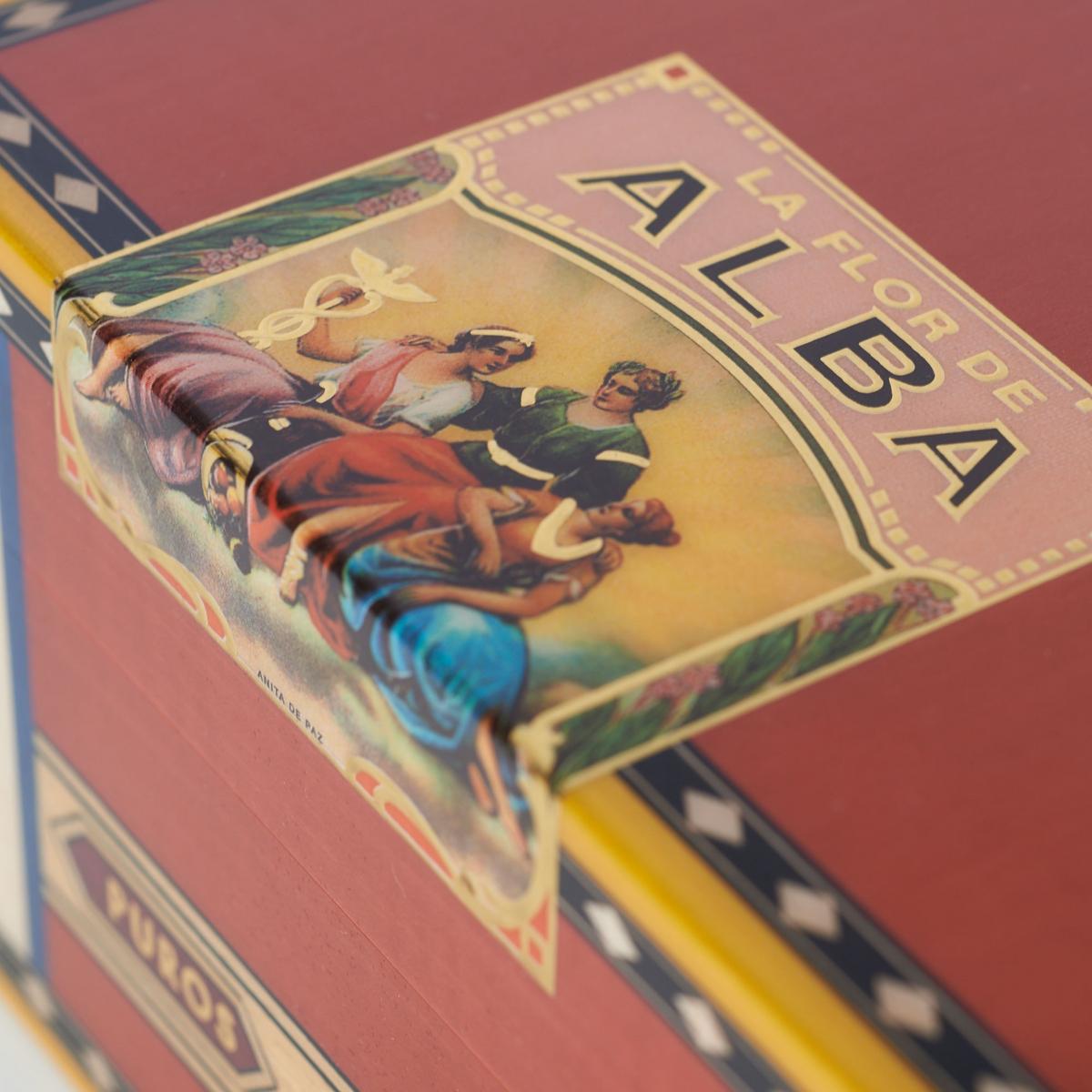 Precious African sycamore fig is used to make this "Alba" humidor from Elie Bleu, although it pretends to be a run-of-the-mill cigar box. There is what looks like the sticky label typical of cigar boxes painted on one side. It is sensory illusion at its best.