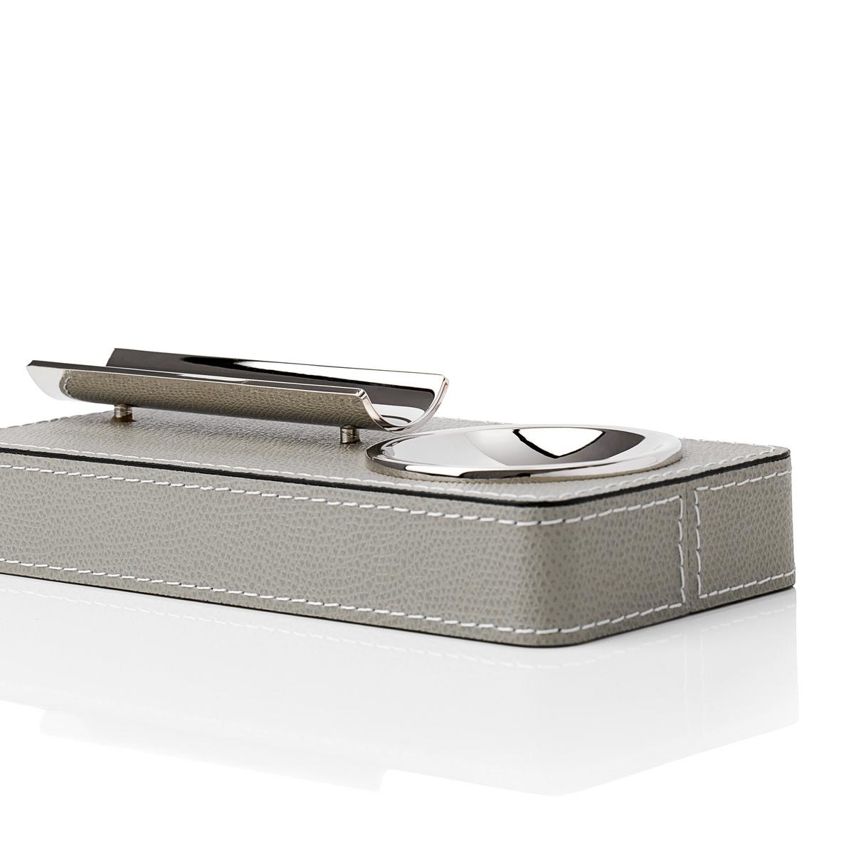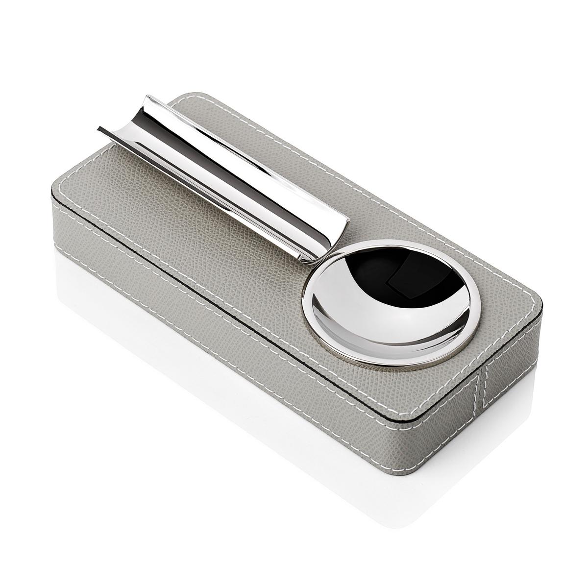 The "Pinar" cigar ashtray from GioBagnara makes a perfect present for every cigar aficionado. It serves both as an ashtray and support for the cigar. The "Pinar" ashtray, which is encased in light grey leather, thus fulfils two functions at the same time.