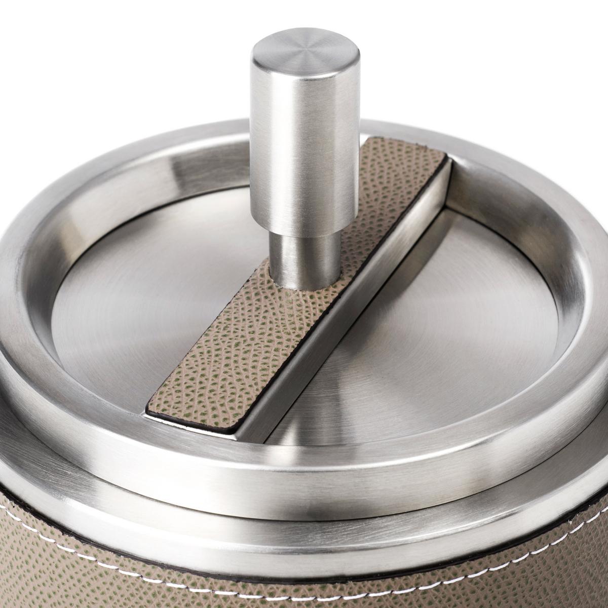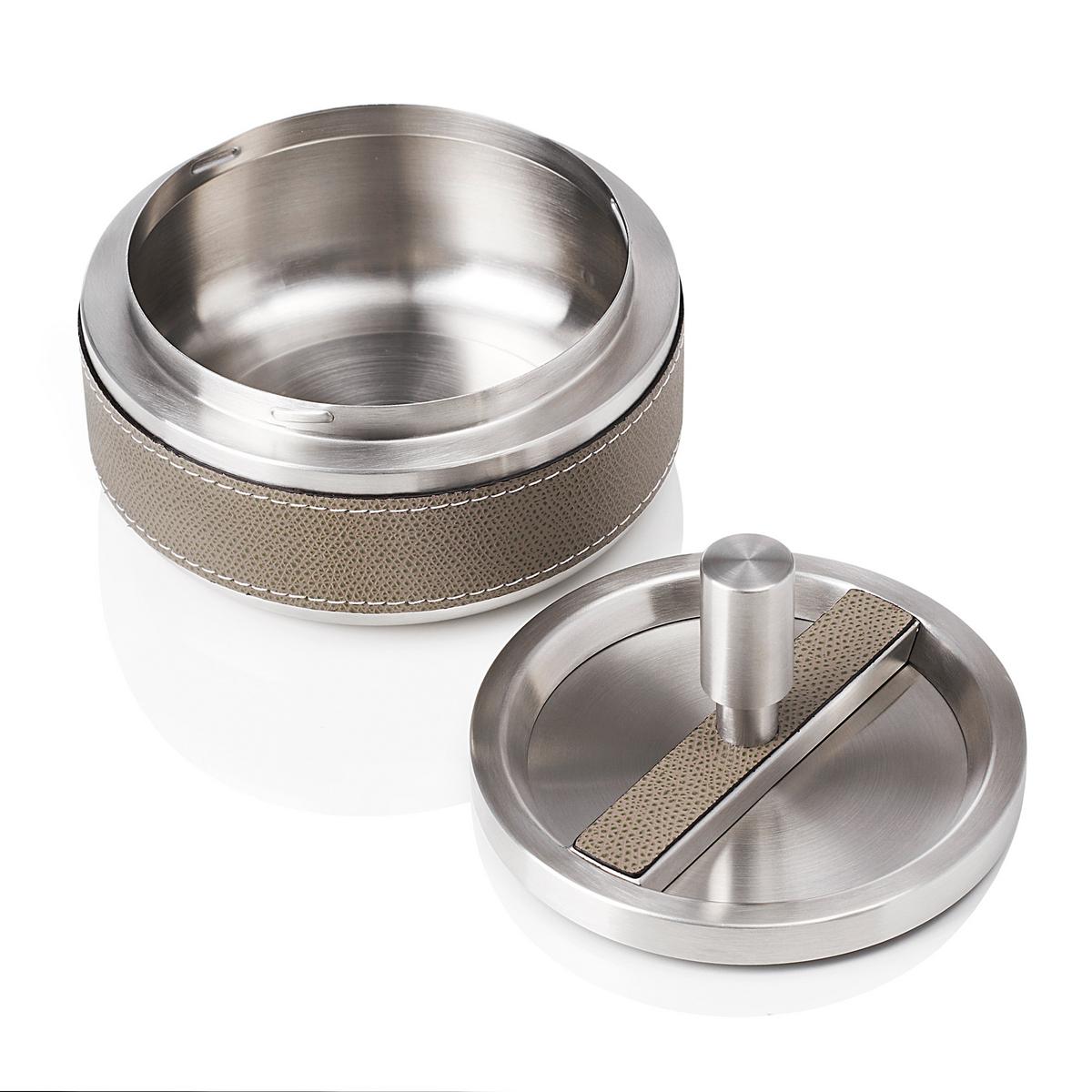 The "Scirocco" ashtray from GioBagnara made of matt polished stainless steel is shapely and conceived to keep odours to a minimum. A very practical turning mechanism makes the ash disappear. Afterwards the "Scirocco" ashtray is again closed to minimise odours.