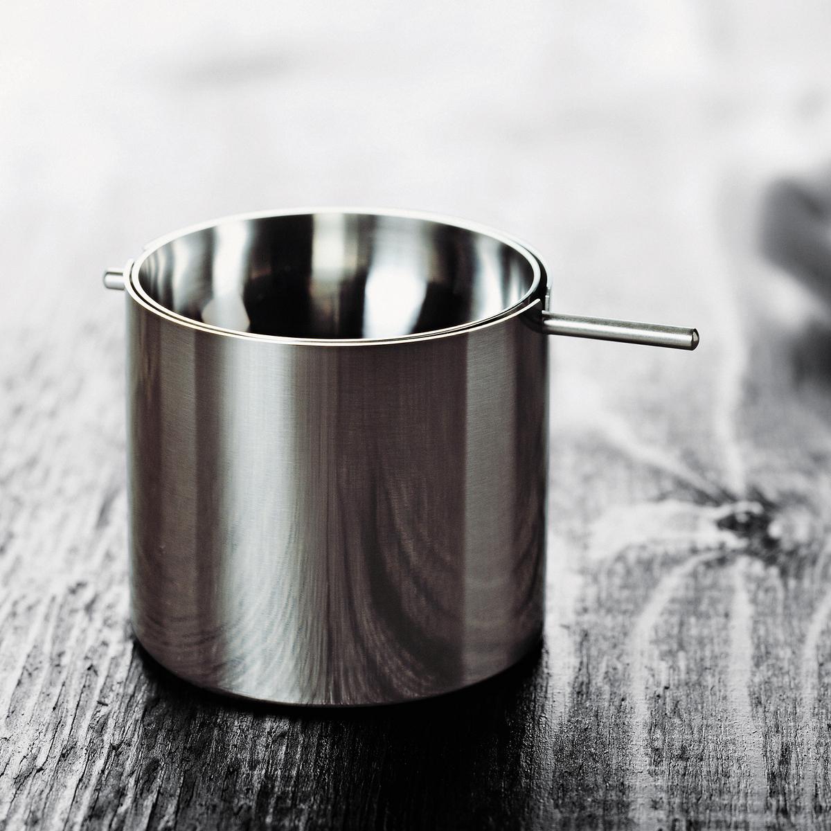 The classic ashtray of matt polished stainless steel is a design by Arne Jacobsen from the year 1967 for Stelton and it has been combating the effects of the blue haze since well before the era of anti-non-smoker campaigns.